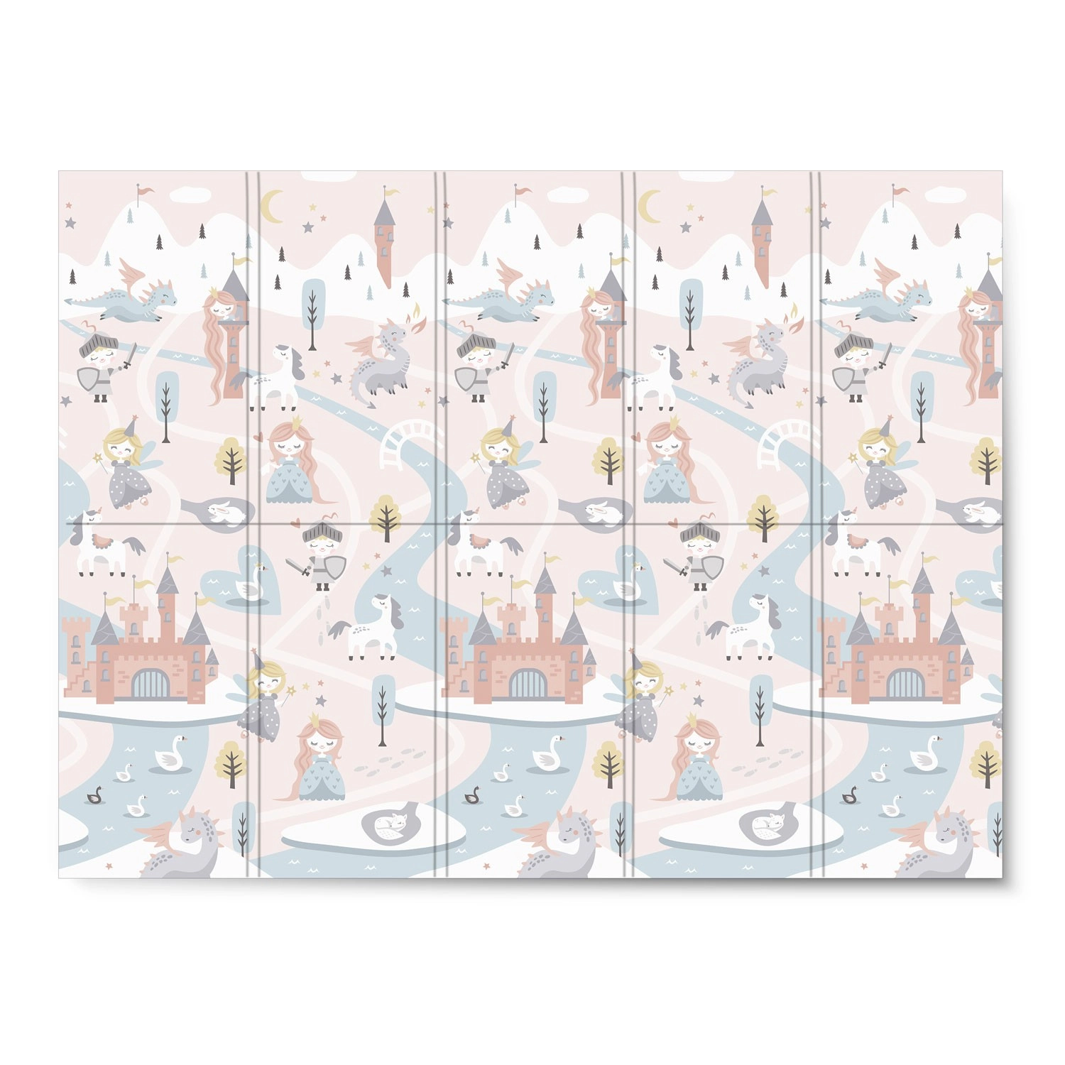 Chaque face propose un motif différent – une variante plus sombre et une plus claire avec châteaux, dragons et licornes. Changez facilement l’ambiance de la pièce et stimulez l’imagination des enfants pendant le jeu et l’apprentissage.