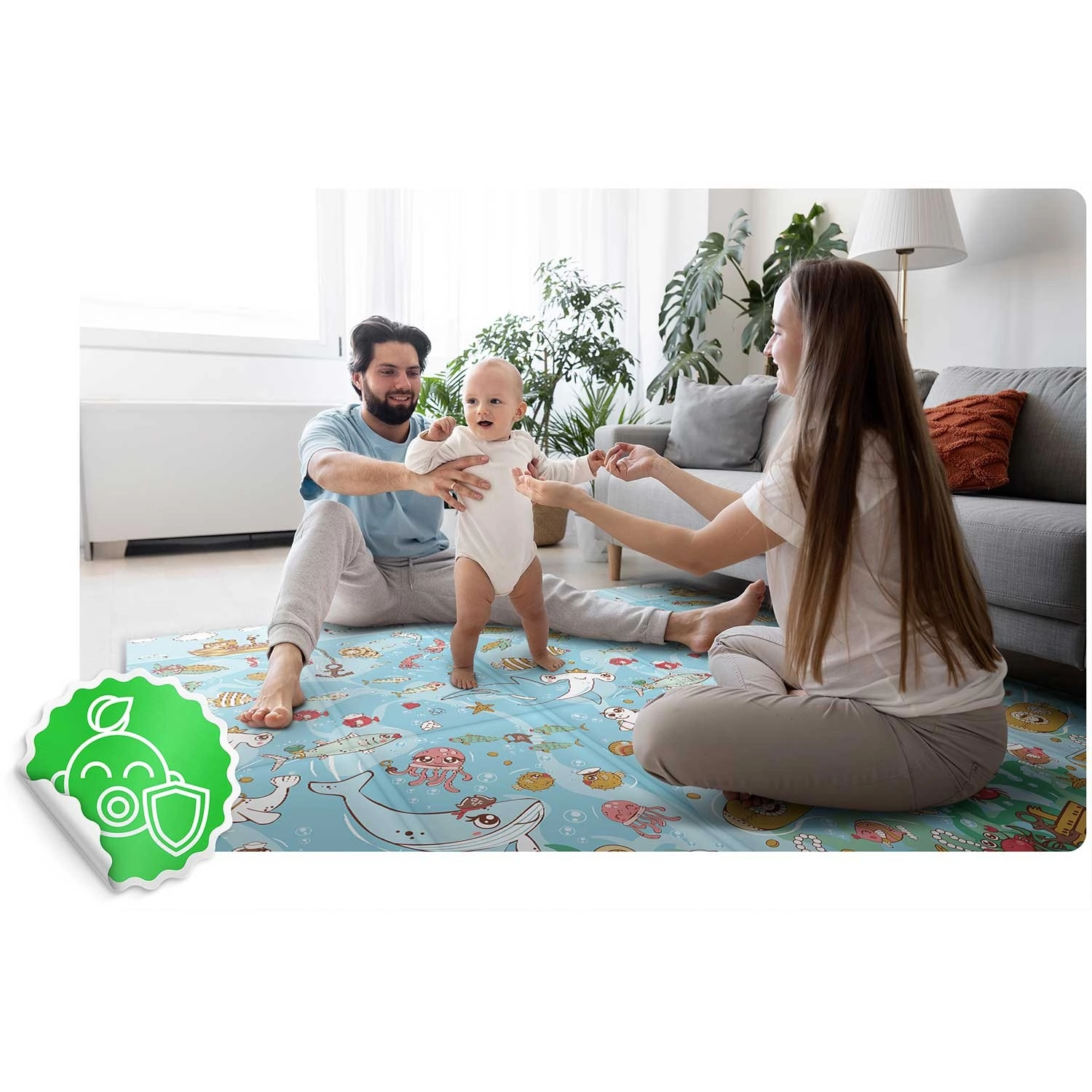 Le tapis de jeu pliable NUKIDO offre aux enfants un espace doux, chaud et sûr pour jouer, ramper et s’exercer. Grâce à son design réversible avec motifs océan et labyrinthe forestier, il stimule l’imagination et favorise naturellement le développement de la motricité fine et globale. La mousse XPE de qualité est inodore, hypoallergénique et, avec une épaisseur de 1 cm, amortit efficacement les chutes sur les sols durs.
