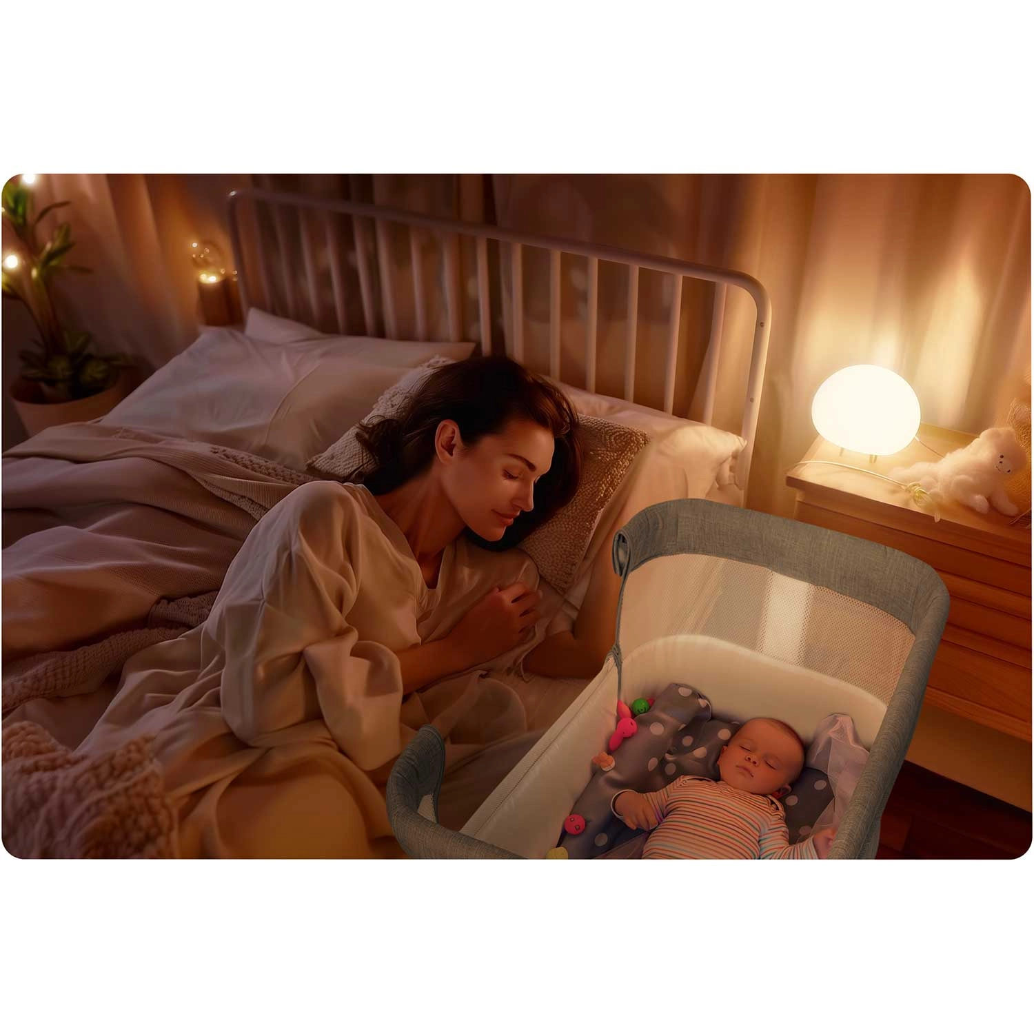Profitez de nuits plus paisibles avec le berceau cododo NUKIDO, qui allie confort, sécurité et fonctionnalité. Bébé dort dans son propre espace tout en restant à portée de main, ce qui facilite les tétées nocturnes et une réponse rapide à ses besoins. Les parois en maille respirante assurent une excellente circulation de l’air et une meilleure visibilité.