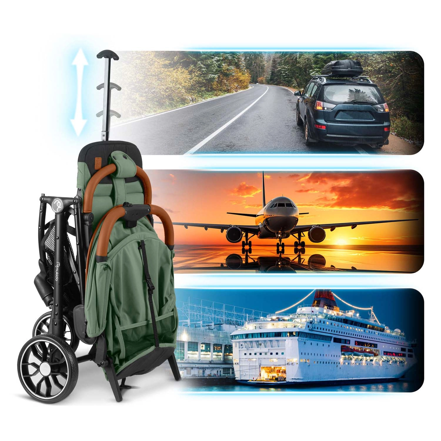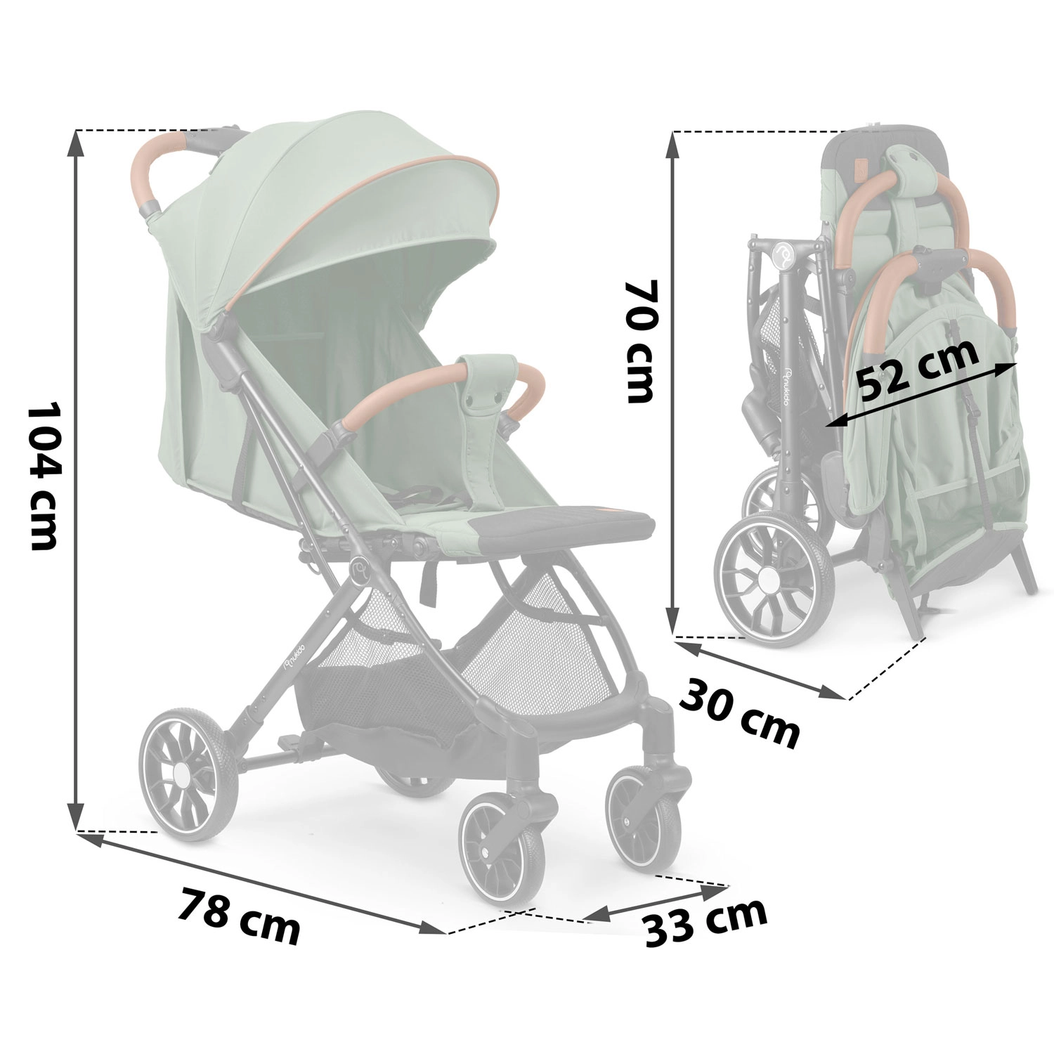 Pliez la poussette d’une seule main en quelques secondes au format bagage à main. Idéale pour les trajets en voiture comme en avion – facile à transporter et à ranger.