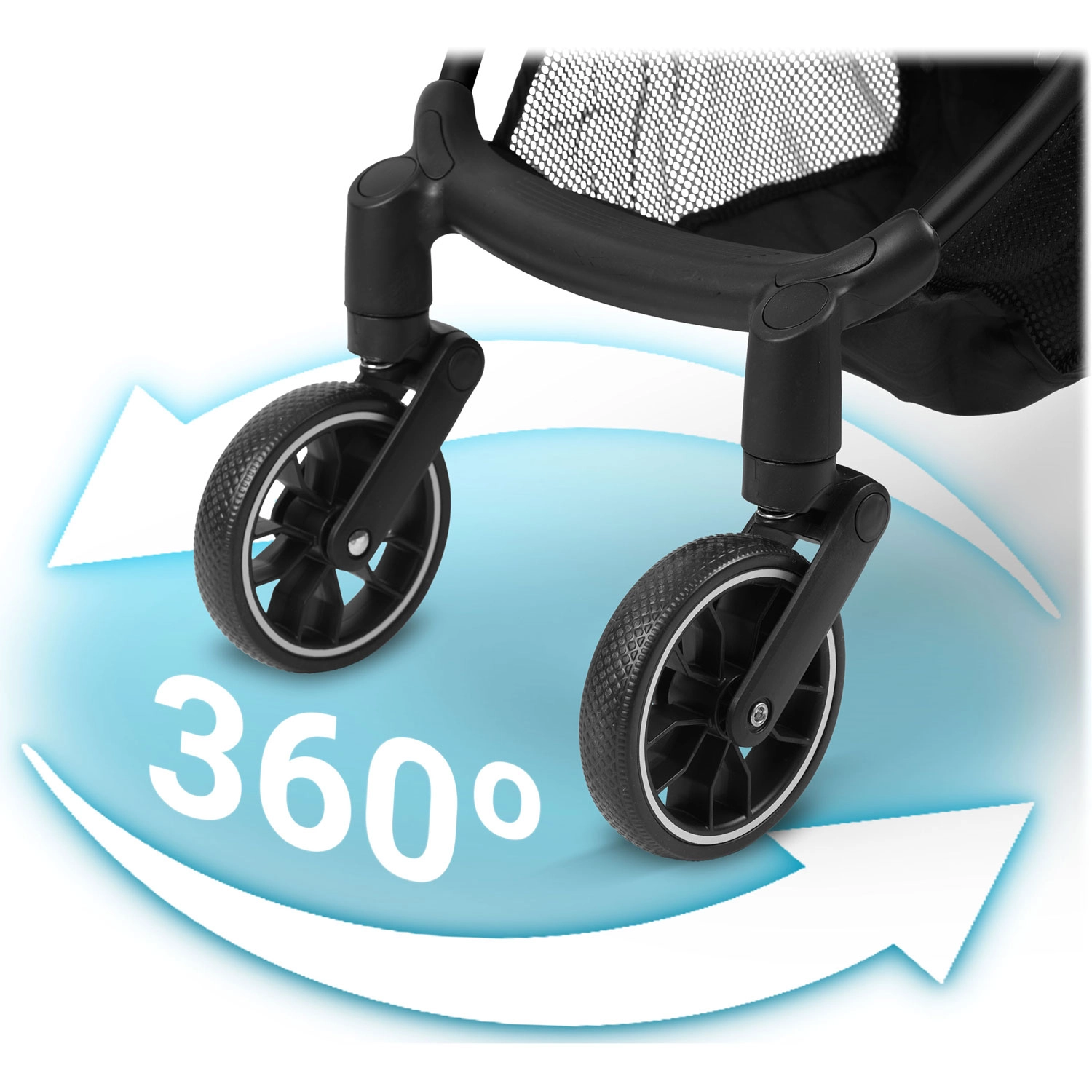Les roues avant pivotantes avec amortissement stable et les grandes roues arrière absorbent les irrégularités et gèrent les virages serrés. Meilleure maniabilité, moins de secousses, plus de confort pour l’enfant.