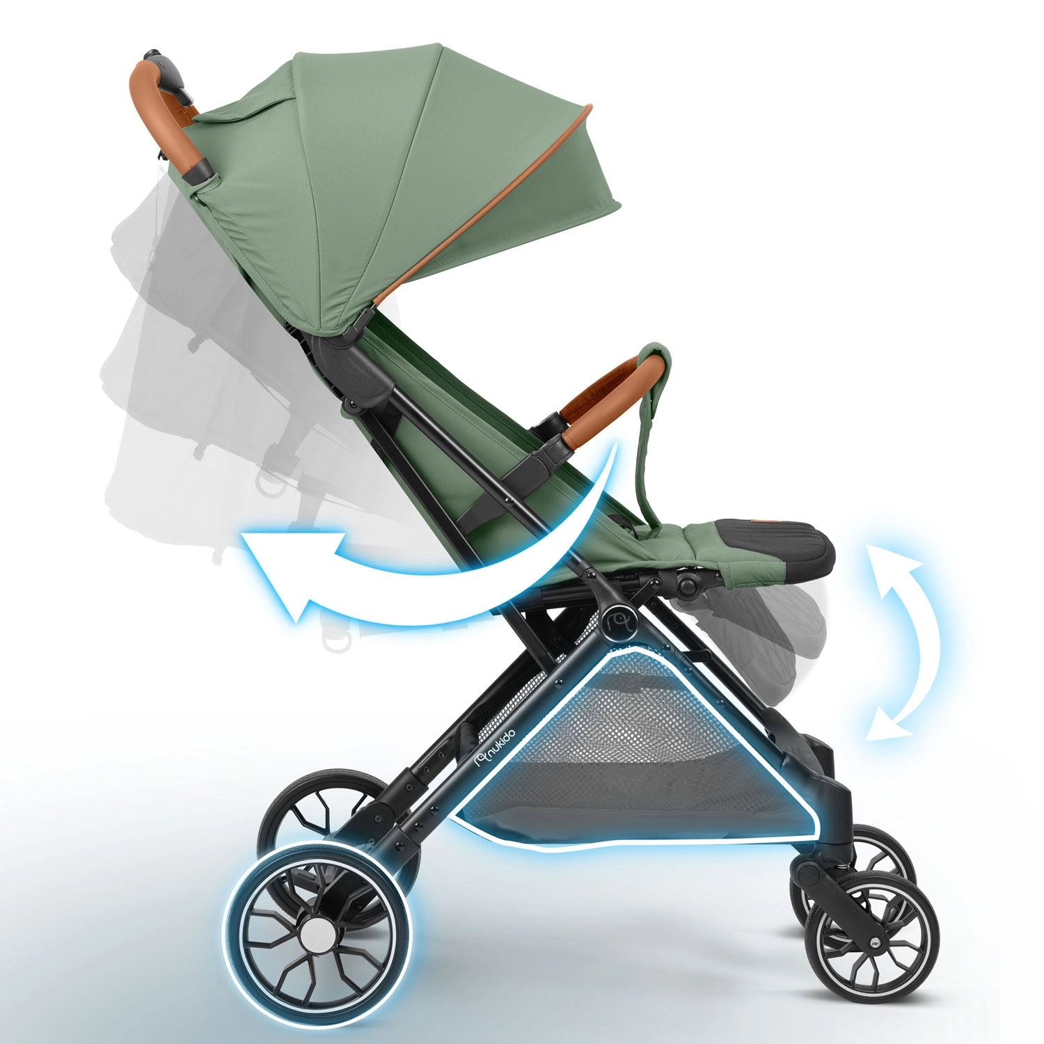 Nukido Paseo allie confort, sécurité et praticité dans un design élégant. Grâce à son châssis léger et résistant, elle se manie facilement, tandis que les roues avant amorties à 360° et les grandes roues arrière tout-terrain assurent une conduite fluide en ville comme au parc. L’enfant est protégé par un harnais cinq points rembourré et une capote extensible avec protection contre le soleil et la pluie légère.