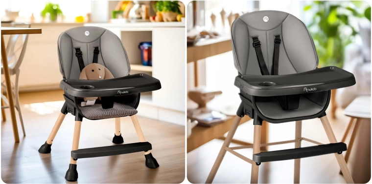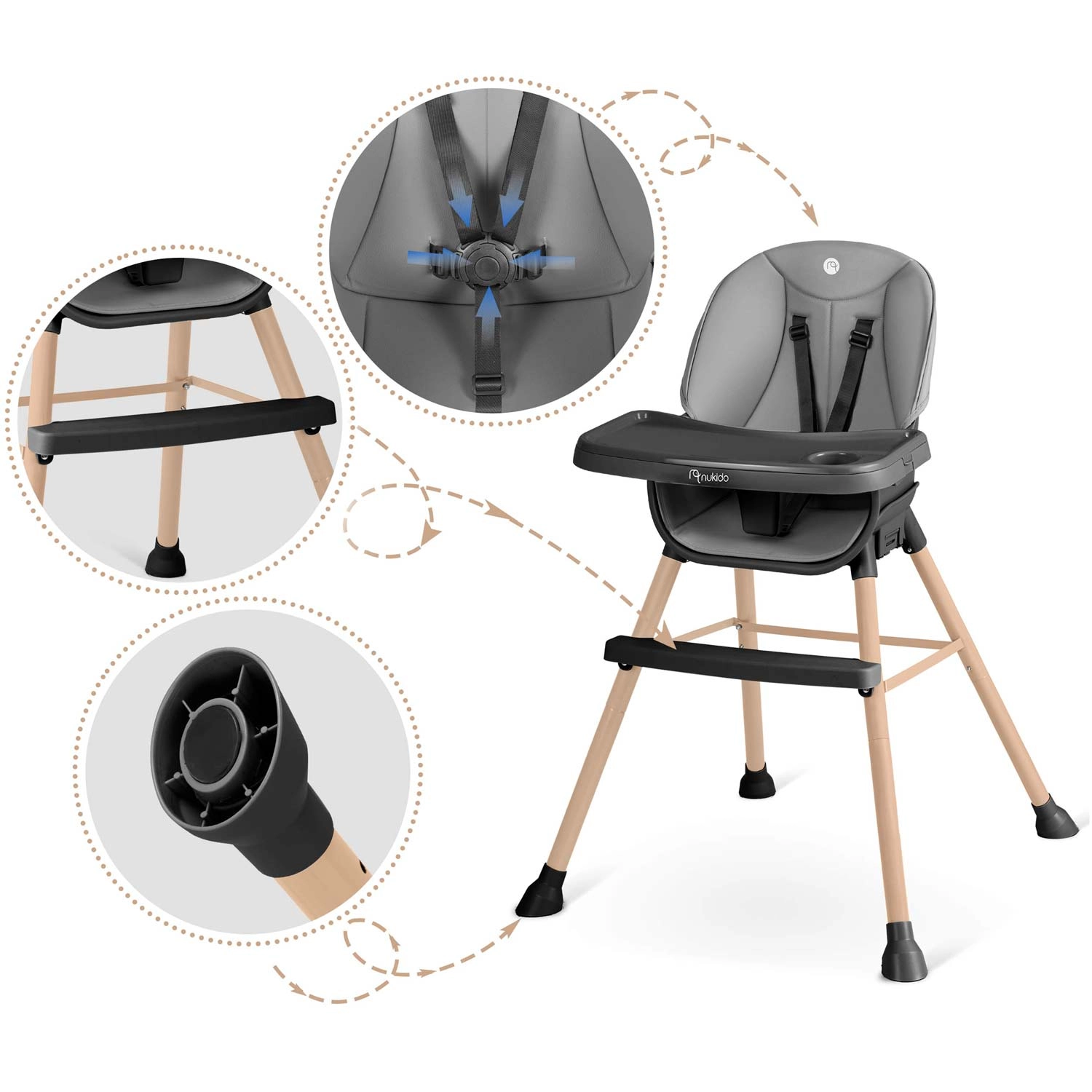 Chaise haute NUKIDO Tilo 3-en-1 gris-noir