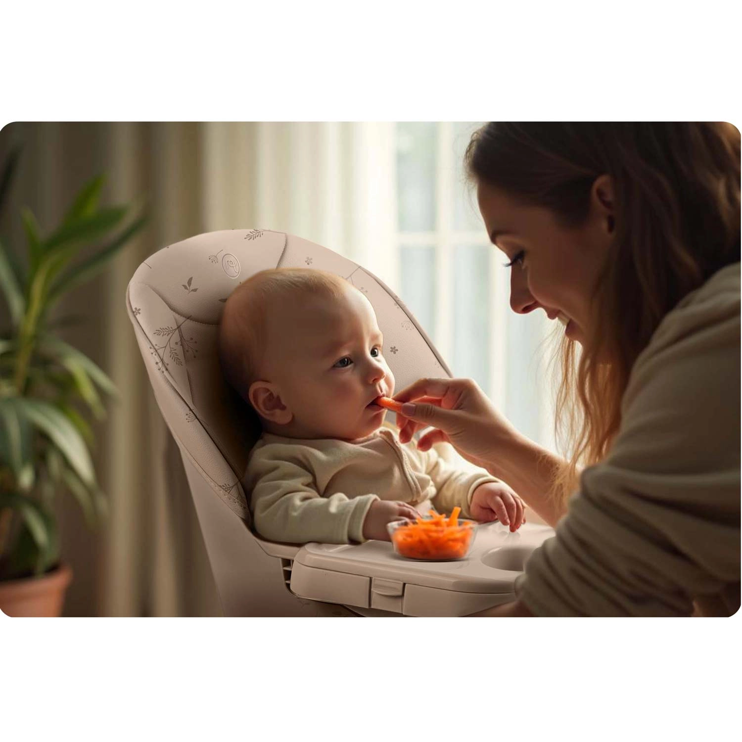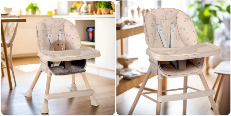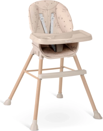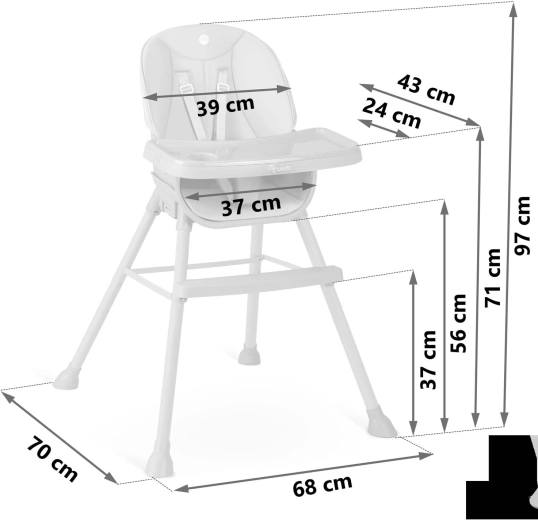 La sécurité est assurée par un harnais 5 points, une base large avec embouts antidérapants et un repose‑pieds solide pour un bon soutien des jambes. La structure est stable et durable, conforme à la norme stricte EN 14988. Idéale non seulement pour les repas, mais aussi pour dessiner, construire des blocs ou les premières lectures – le plateau pratique garde livres, bol et gobelet à portée de main.