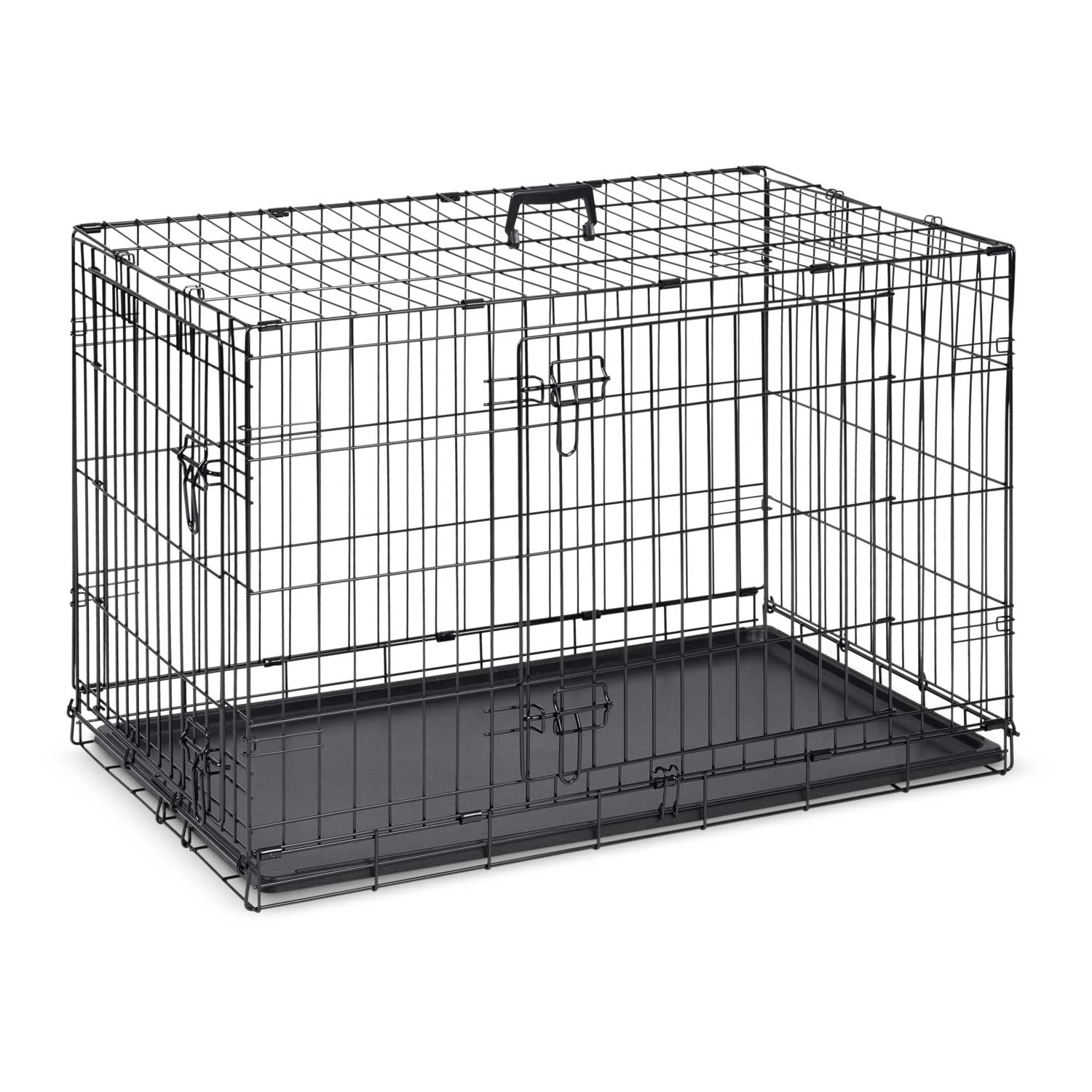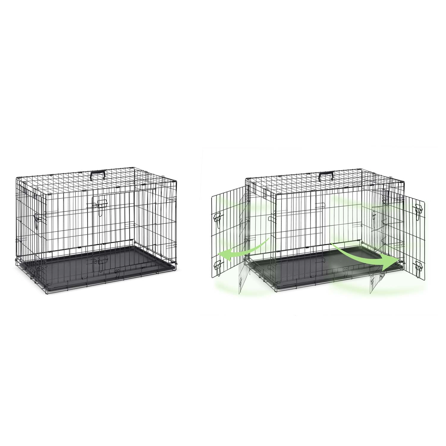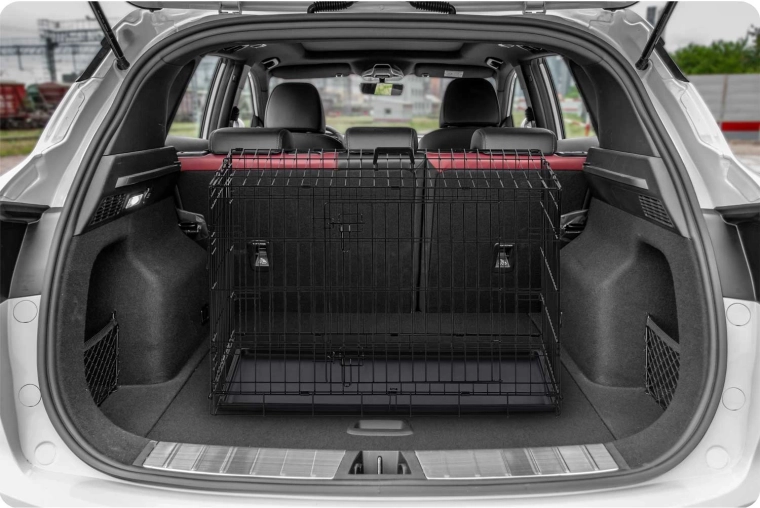 Entrées avant et latérale avec loquets de sécurité pour un embarquement aisé du chien et une meilleure adaptation de la cage à votre intérieur.