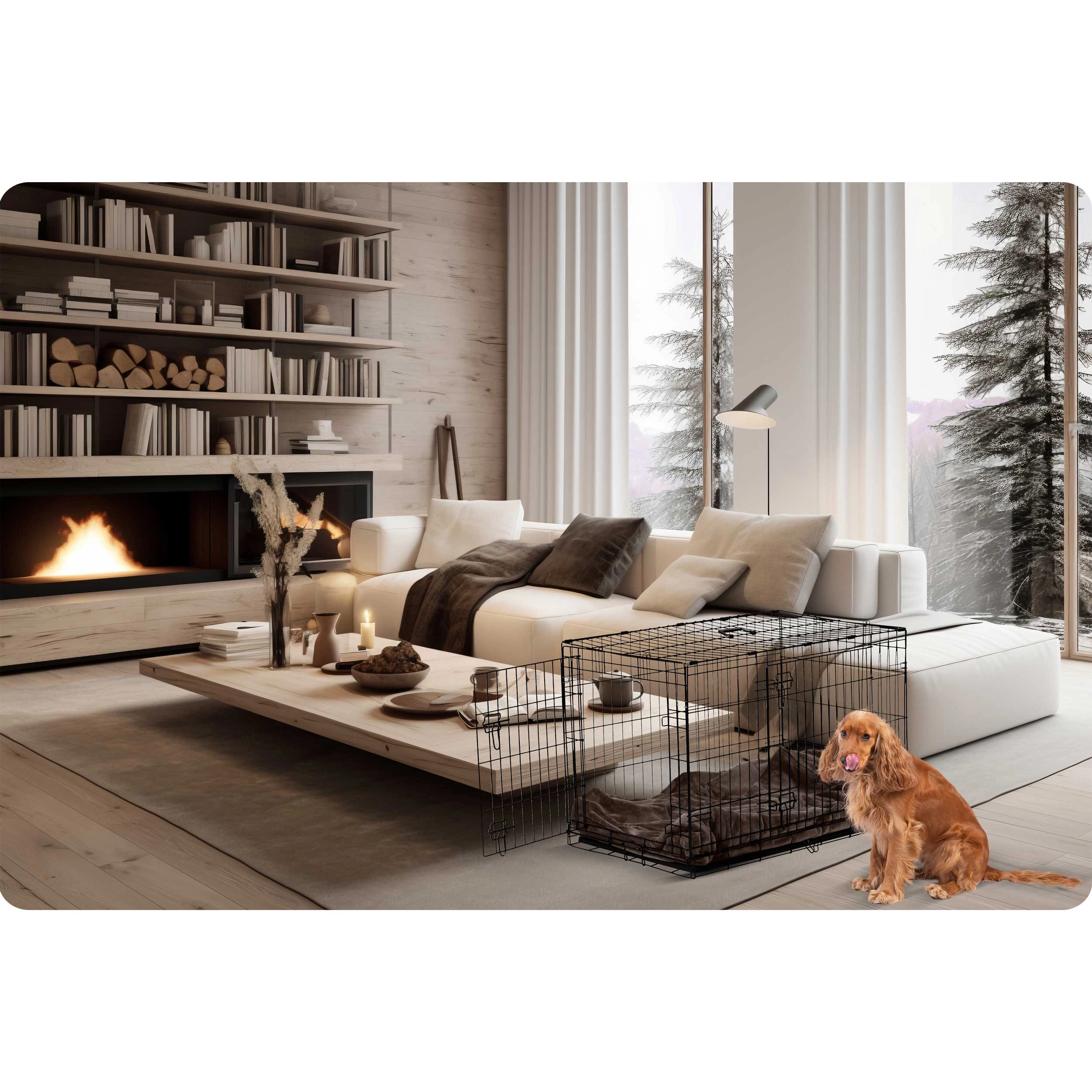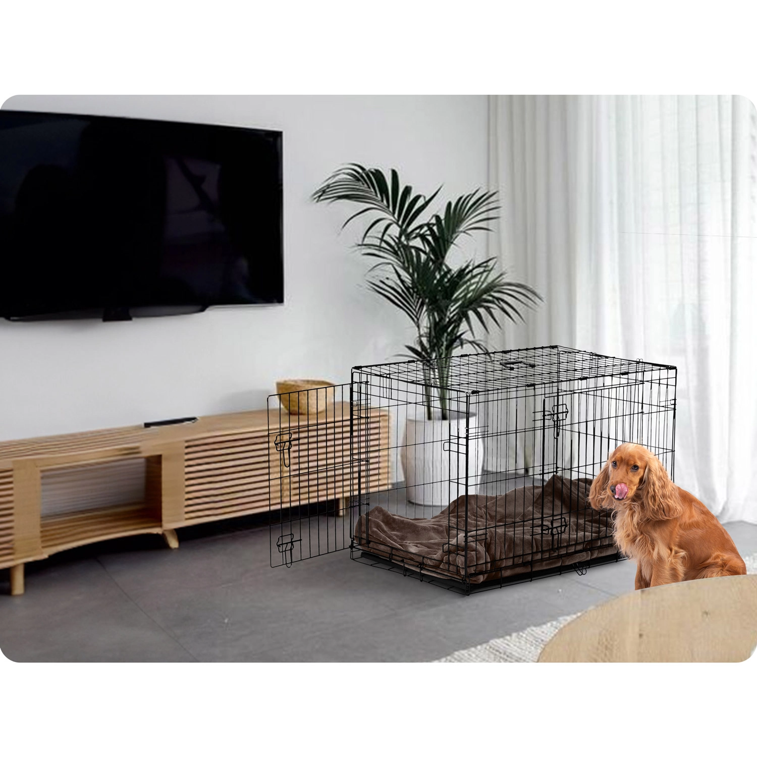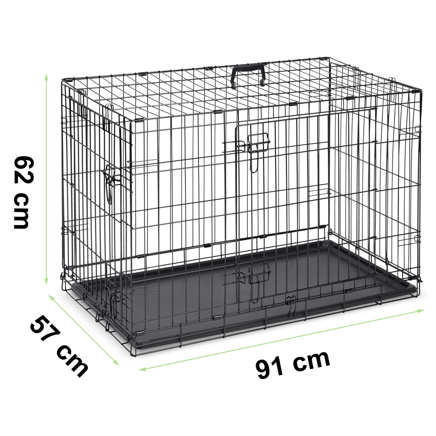 La structure en acier stable avec loquets de sécurité assure un repos serein et une fermeture fiable pendant le transport. La cage offre une excellente aération, permet au chien de voir ce qui l’entoure et l’aide à se sentir en sécurité, que ce soit à la maison, en excursion ou en voiture.