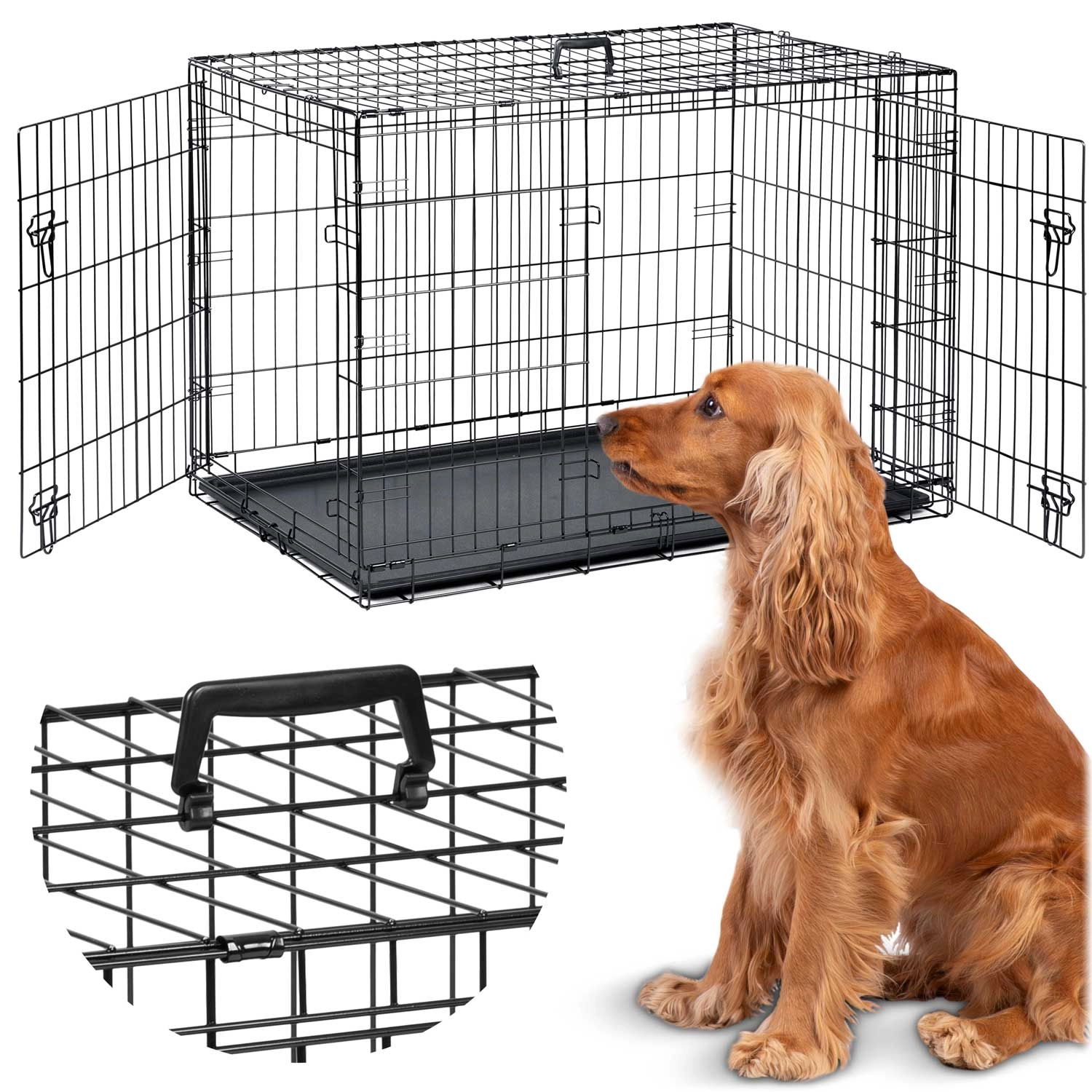 Pratique et résistante, la cage en métal pour chien taille M offre à votre compagnon un espace sûr et confortable à la maison comme en voyage. Grâce à ses deux portes (avant et latérale), son bac coulissant facile à nettoyer et son pliage rapide en mallette plate avec poignée, elle est idéale pour un usage quotidien, l’entraînement et le transport en voiture.