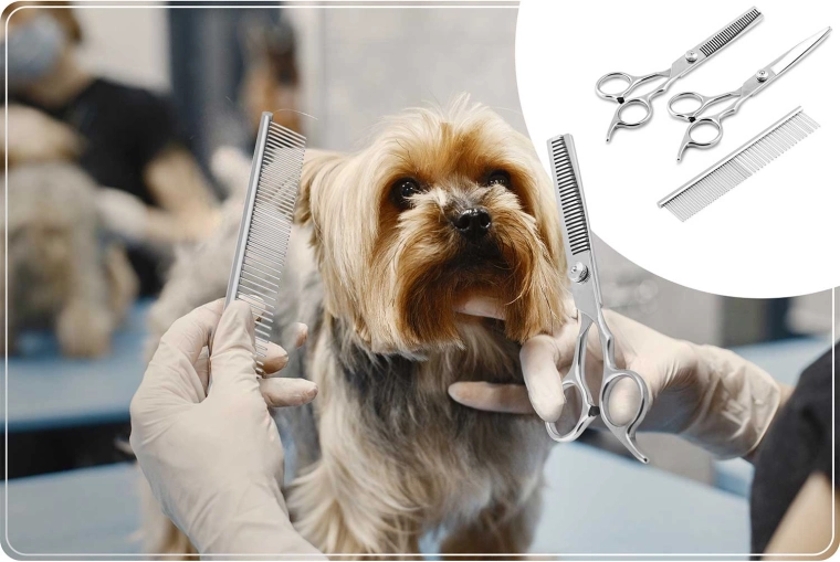 - Équipement complet – 4 sabots, brosse de nettoyage; le kit comprend également des ciseaux, des ciseaux désépaississants, un peigne et des outils pour les griffes (coupe-griffes et lime) pour une mise en forme complète.