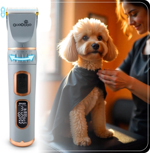 PETHAUS PH-100 est une tondeuse fiable pour chiens et chats, alliant haute performance et fonctionnement silencieux pour un toilettage le plus confortable possible. Les lames en acier durables garantissent une coupe précise et nette sans tiraillements, tandis que l’écran LCD affiche l’état de la batterie, la vitesse et le mode pour un contrôle permanent.