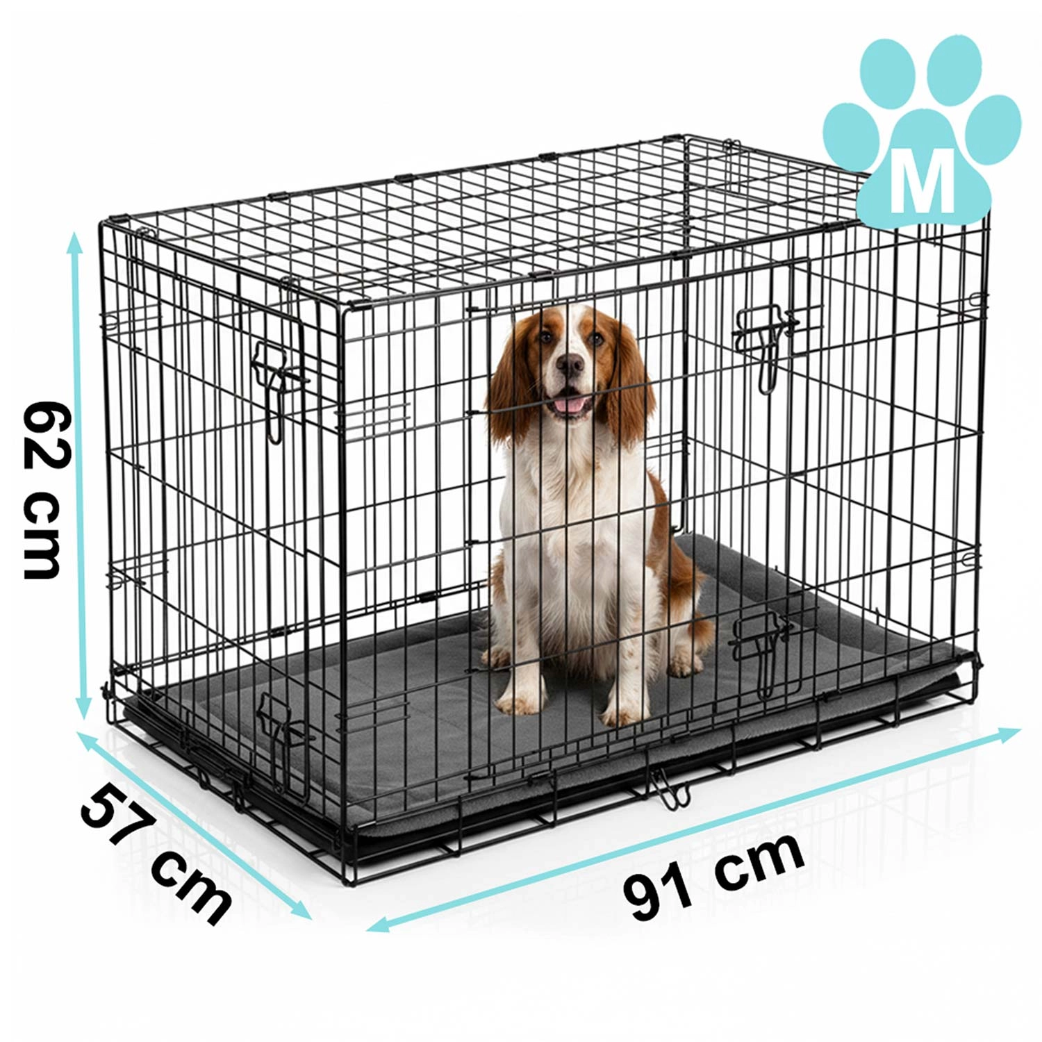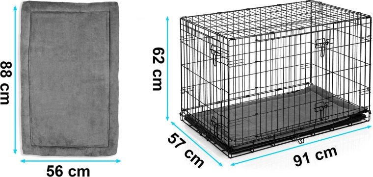 Caisse de transport en métal pour chien avec matelas 91 × 57 × 62 cm, taille M