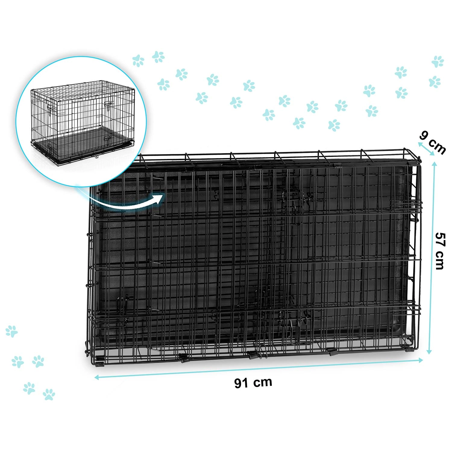 La caisse se plie facilement à plat en quelques secondes et, grâce à sa poignée pratique, vous la transportez ou la rangez aisément. C’est un excellent allié pour une éducation responsable – il aide au dressage à la propreté, protège la maison des dégradations et s’avère utile pendant les périodes de convalescence nécessitant une activité réduite.