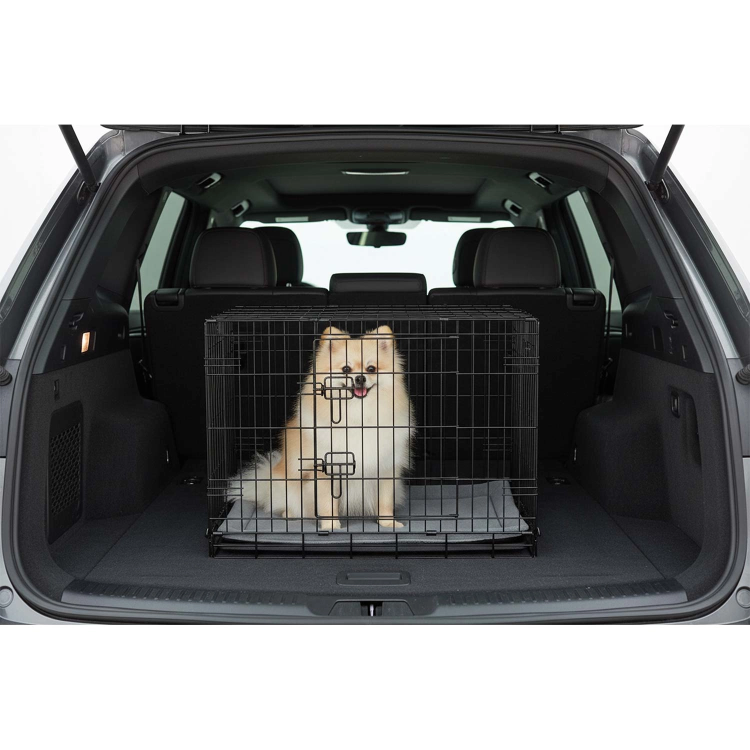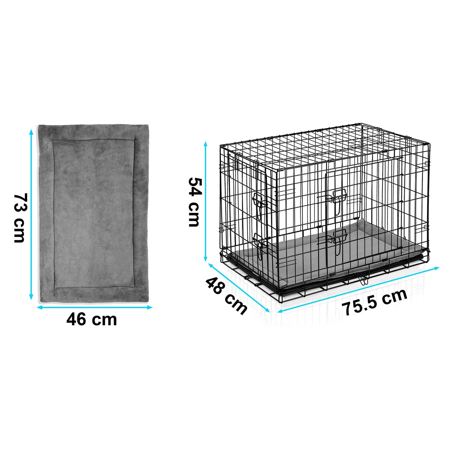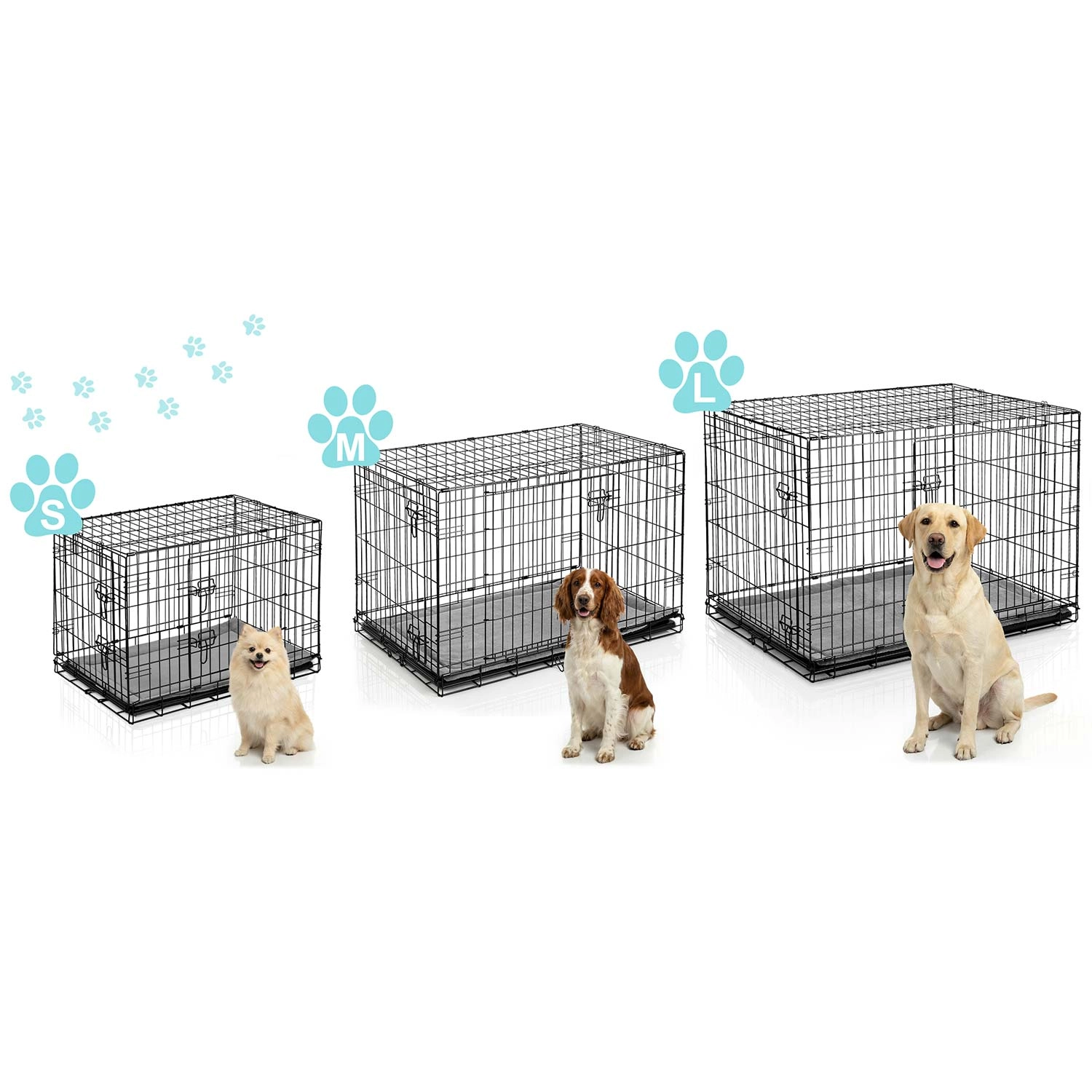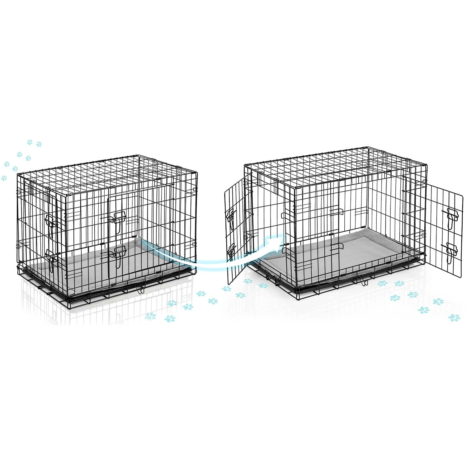 Caisse kennel pratique et résistante avec coussin pour petits chiens, offrant sécurité, confort et excellente ventilation à la maison comme en voyage. Deux portes pour un accès facile, plateau coulissant pour un nettoyage rapide et structure pliante à plat avec poignée de transport pour une utilisation aisée. Idéale pour l’entraînement, le repos et le transport sécurisé en voiture.
