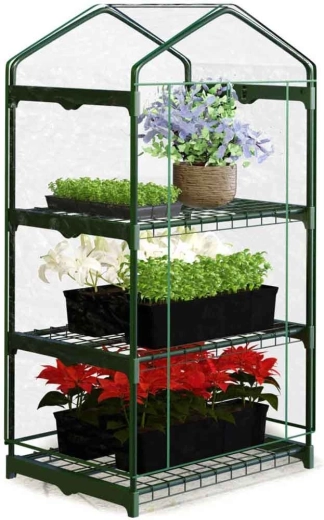 Des fermetures éclair à double sens permettent d’ouvrir rapidement la « porte » pour l’arrosage et l’aération, tandis que la stabilisation UV et la résistance à l’eau protègent la végétation des changements météorologiques soudains. L’espace dédié sous les étagères peut accueillir des pots ou des outils de jardinage – tout reste à portée de main, bien organisé et économe en place.