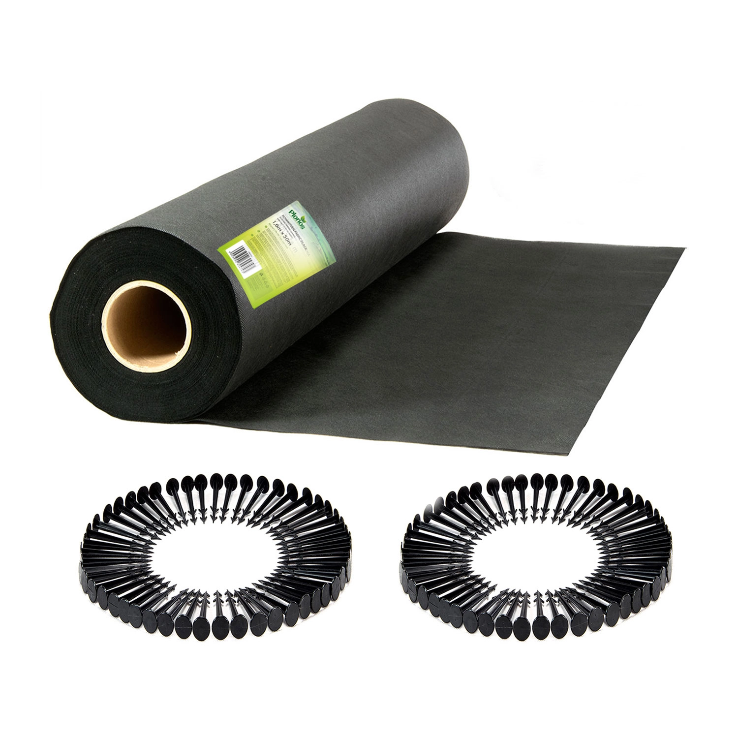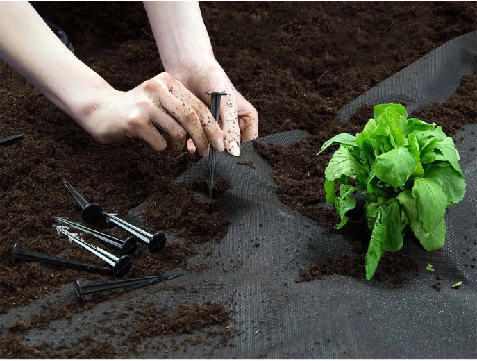 Fabriquée en polypropylène résistant, elle supporte des conditions exigeantes. Le paquet comprend également 100 piquets de fixation qui facilitent l’installation et garantissent que la toile reste exactement en place. Idéale pour les massifs de légumes et de fleurs, les rocailles, sous paillis, écorces ou pierres décoratives.