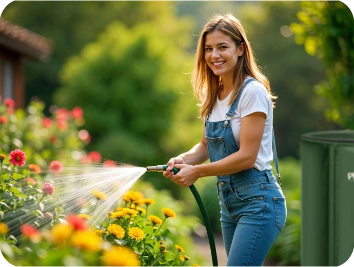 - Eau propre sans chlore – bénéfique pour les plantes, la pelouse et les massifs.