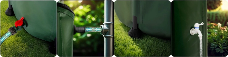 Des éléments de commande pratiques assurent un usage confortable : robinet avant avec levier on/off pour remplir rapidement l’arrosoir et vanne de vidange/évacuation inférieure pour raccorder un tuyau et distribuer efficacement l’eau dans tout le jardin. Une fois plié, le tonneau occupe un minimum d’espace, idéal pour les petits jardins et le stockage saisonnier.