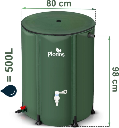 Conservez l'eau de pluie pour votre oasis de jardin avec le pratique tonneau Plonos de 500 l. Grâce à son cadre robuste, sa bâche en PVC résistante et à des éléments astucieux comme le robinet avant avec levier on/off, la vanne de vidange inférieure et la possibilité de raccorder un tuyau d’arrosage, l’utilisation est simple et confortable. Le tamis filtrant maintient l’eau propre et le couvercle résistant aux UV et aux intempéries assure une longue durée de vie. Une solution idéale pour économiser l’eau et arroser de manière écologique au jardin ou à la campagne.