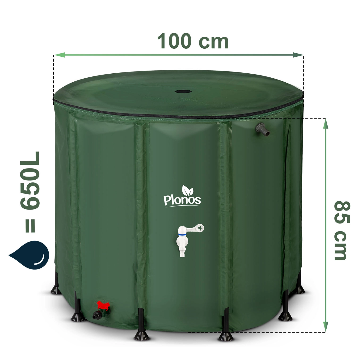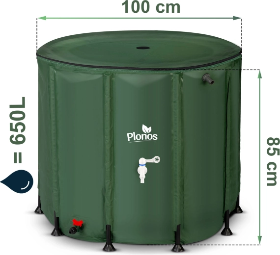 Stockez gratuitement l’eau de pluie pour le jardin, la serre et la pelouse. Le récupérateur pliable Plonos 650 l offre une grande capacité, un dosage aisé via le robinet avant et une vidange rapide grâce à la vanne inférieure. Grâce au raccordement à la gouttière et à l’orifice supérieur muni d’un tamis, l’eau reste plus propre, sans feuilles ni saletés.