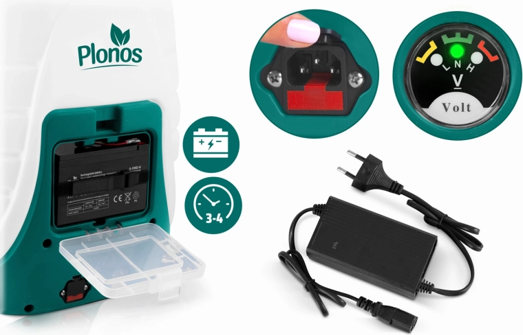 - Longue autonomie – batterie au plomb 12 V / 8 Ah pour 3–4 h de travail.