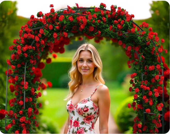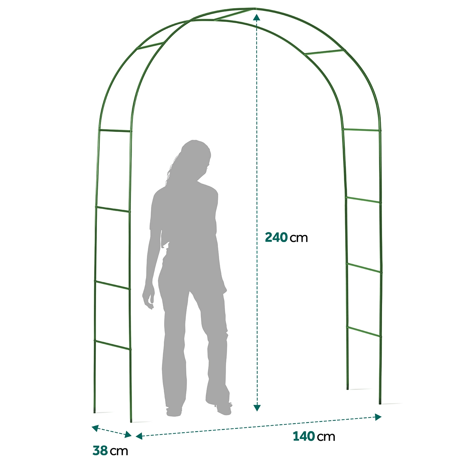 Grâce à l’acier revêtu par poudre, la structure résiste à la corrosion, à la pluie et aux UV. Le montage intuitif ne nécessite pas d’outils spéciaux et l’emballage comprend 4 ancres de sol ainsi que des vis de montage pour un ancrage fiable. Vous pouvez compléter la pergola avec des guirlandes lumineuses, des rubans ou des décorations florales pour créer des mises en scène impressionnantes lors de mariages, de fêtes ou pour la détente au quotidien.