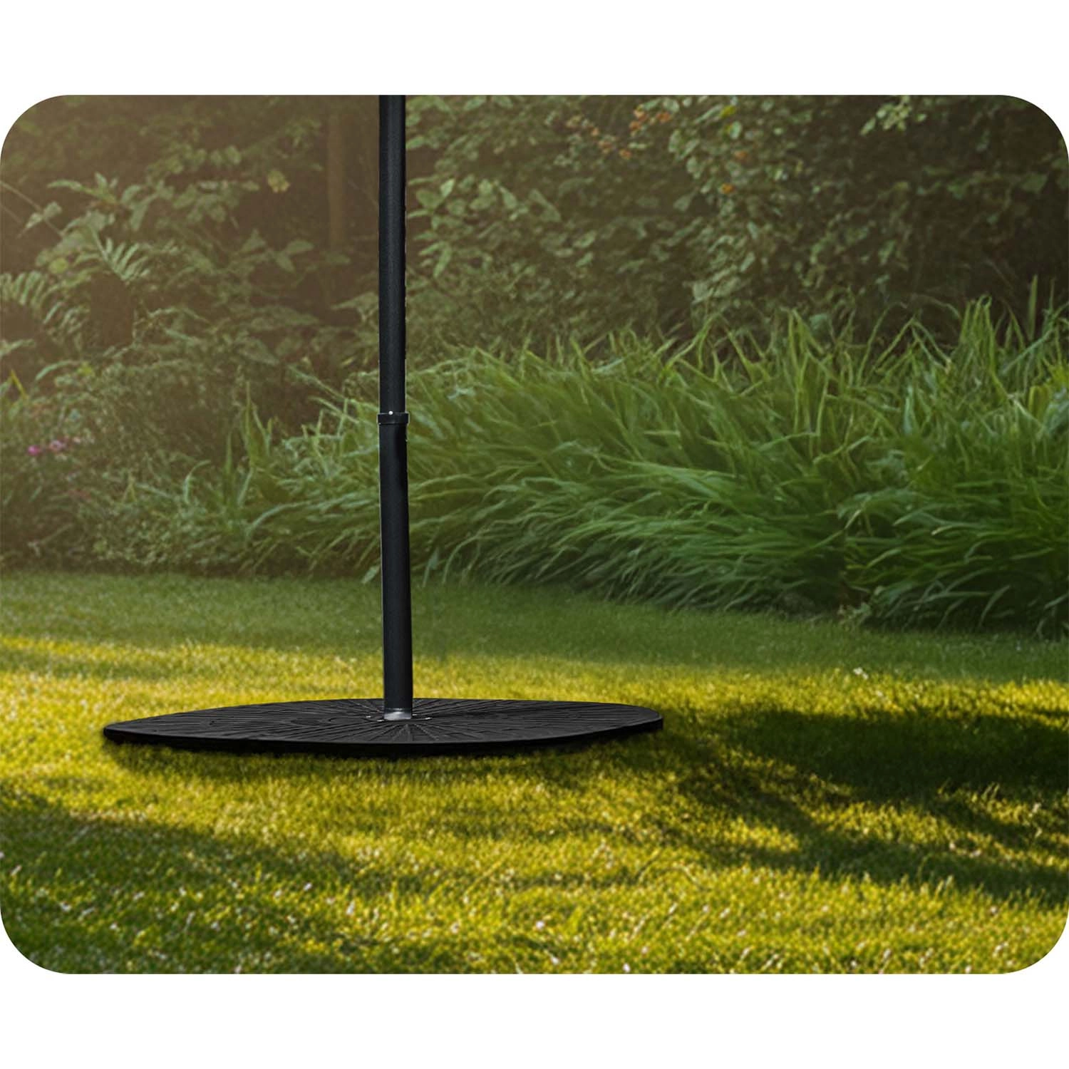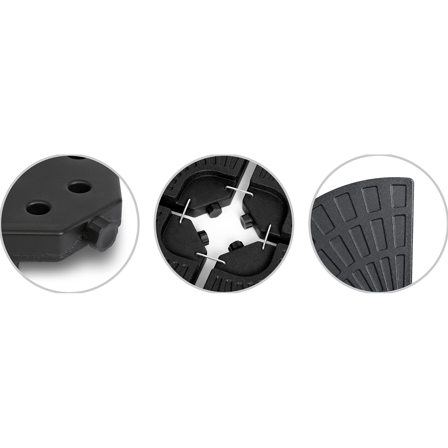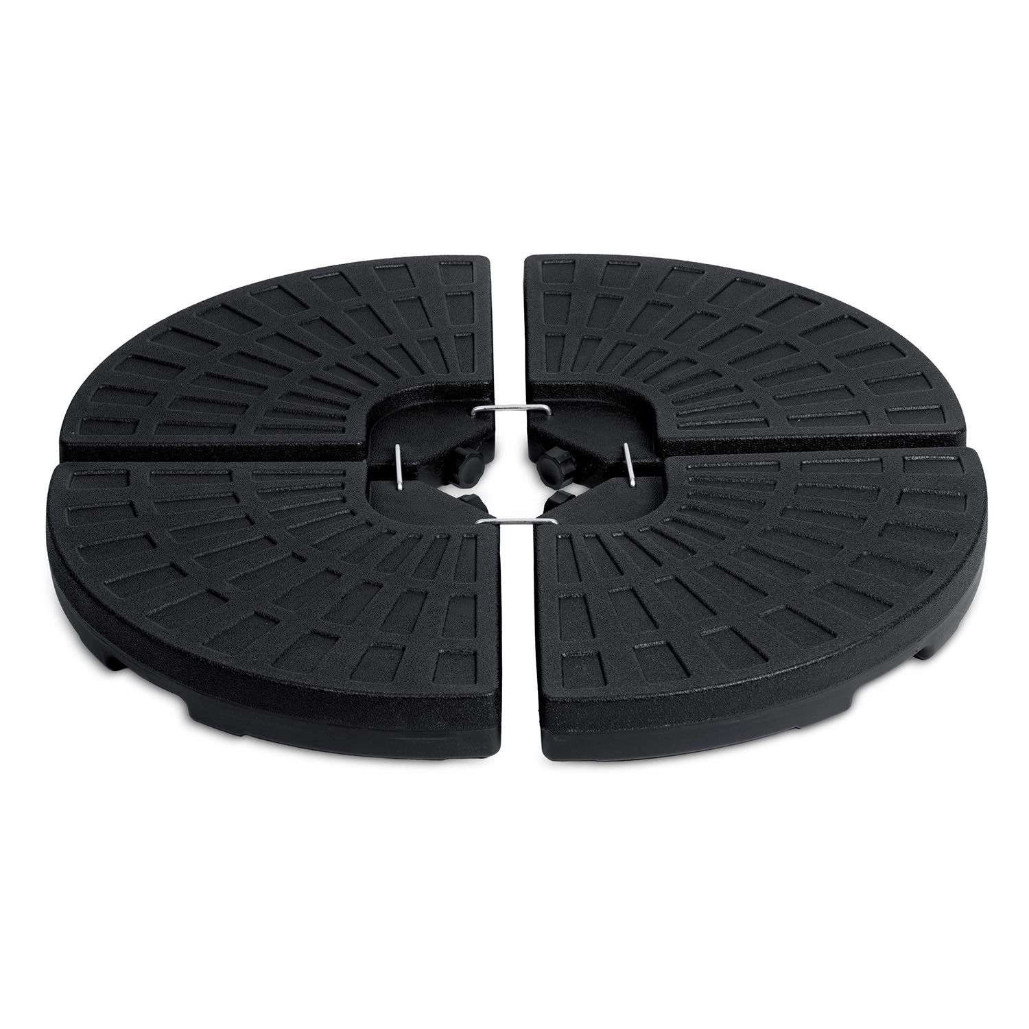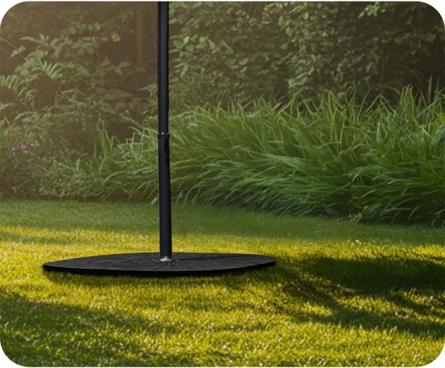 Quatre segments interconnectés enserrent fermement le mât et forment une base circulaire compacte, renforçant la stabilité du parasol même par temps venteux.