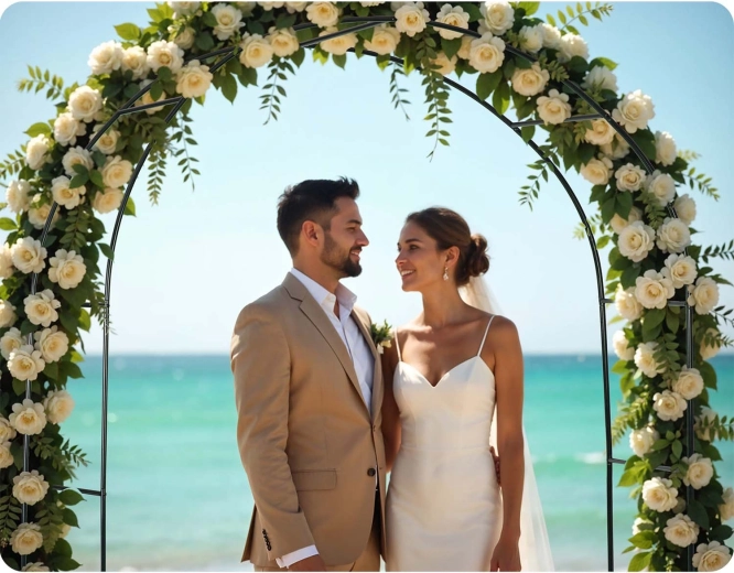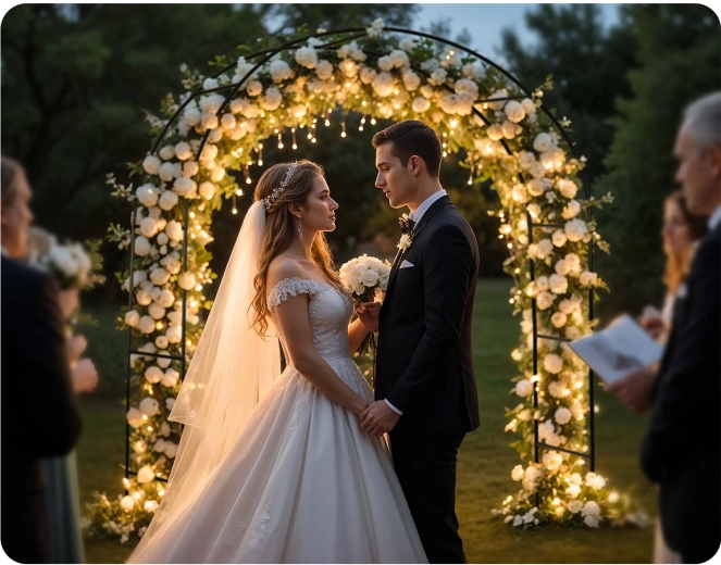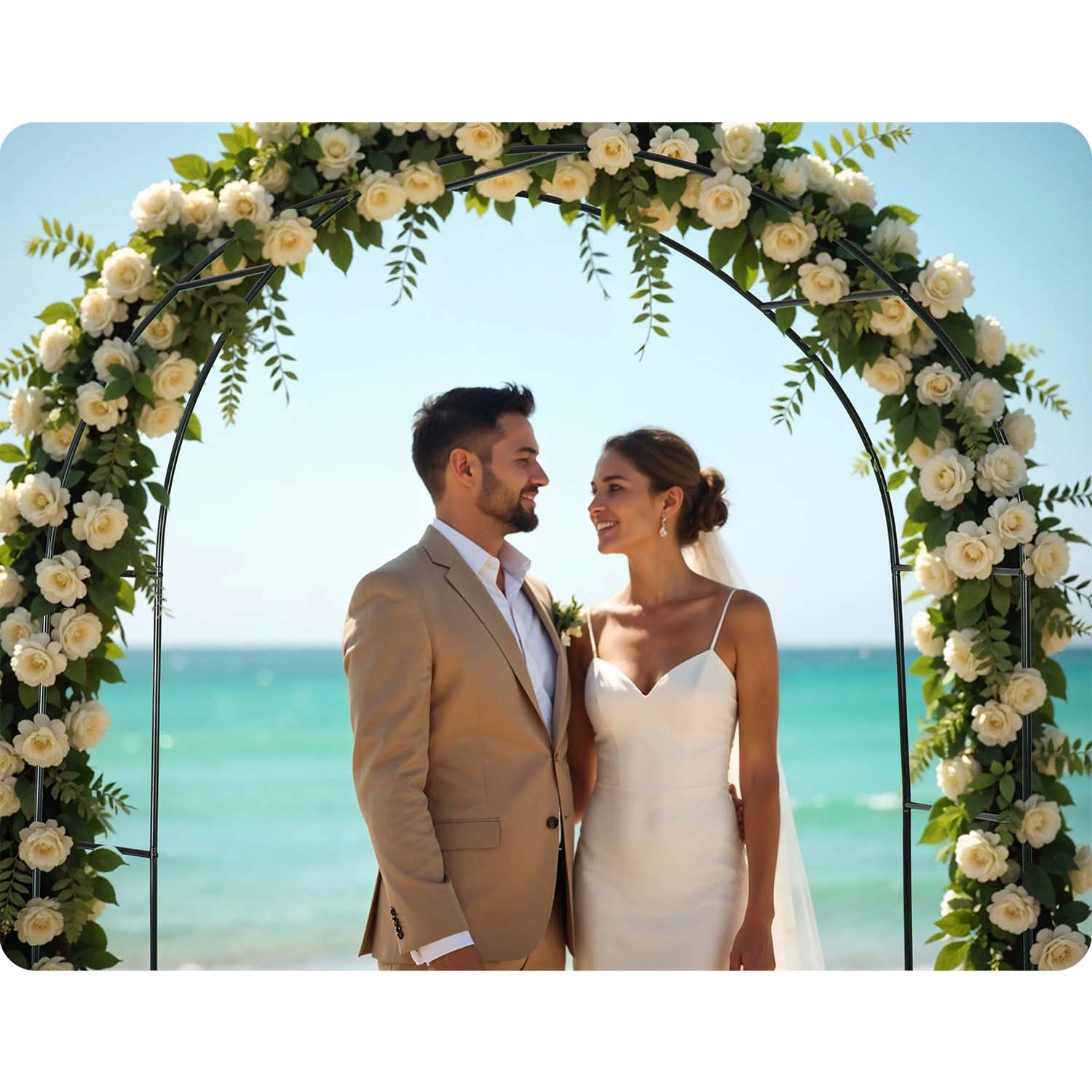 La forme arquée crée un support naturel pour les rosiers, le lierre ou la vigne et se complète aisément par des guirlandes lumineuses pour une ambiance festive.