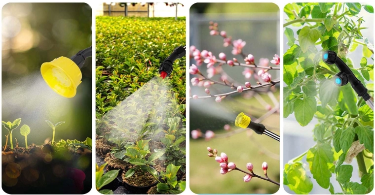 Buse de brumisation fine, buse à jet plat, buse réglable à quatre orifices et tête double – de la brume délicate à la large couverture. Un dosage précis économise produits chimiques et temps.