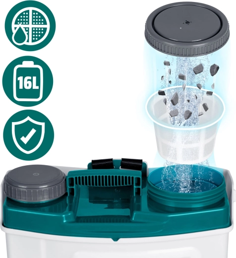 Grâce aux 4 buses interchangeables, choisissez facilement le jet idéal – brume fine pour les plantes sensibles, jet plat pour un travail précis, buse réglable à quatre orifices pour un usage polyvalent ou tête double pour une couverture rapide de massifs plus larges. Des bretelles rembourrées et renforcées avec réglage, une crépine filtrante contre les impuretés et un réservoir PE résistant garantissent longévité et confort de travail.