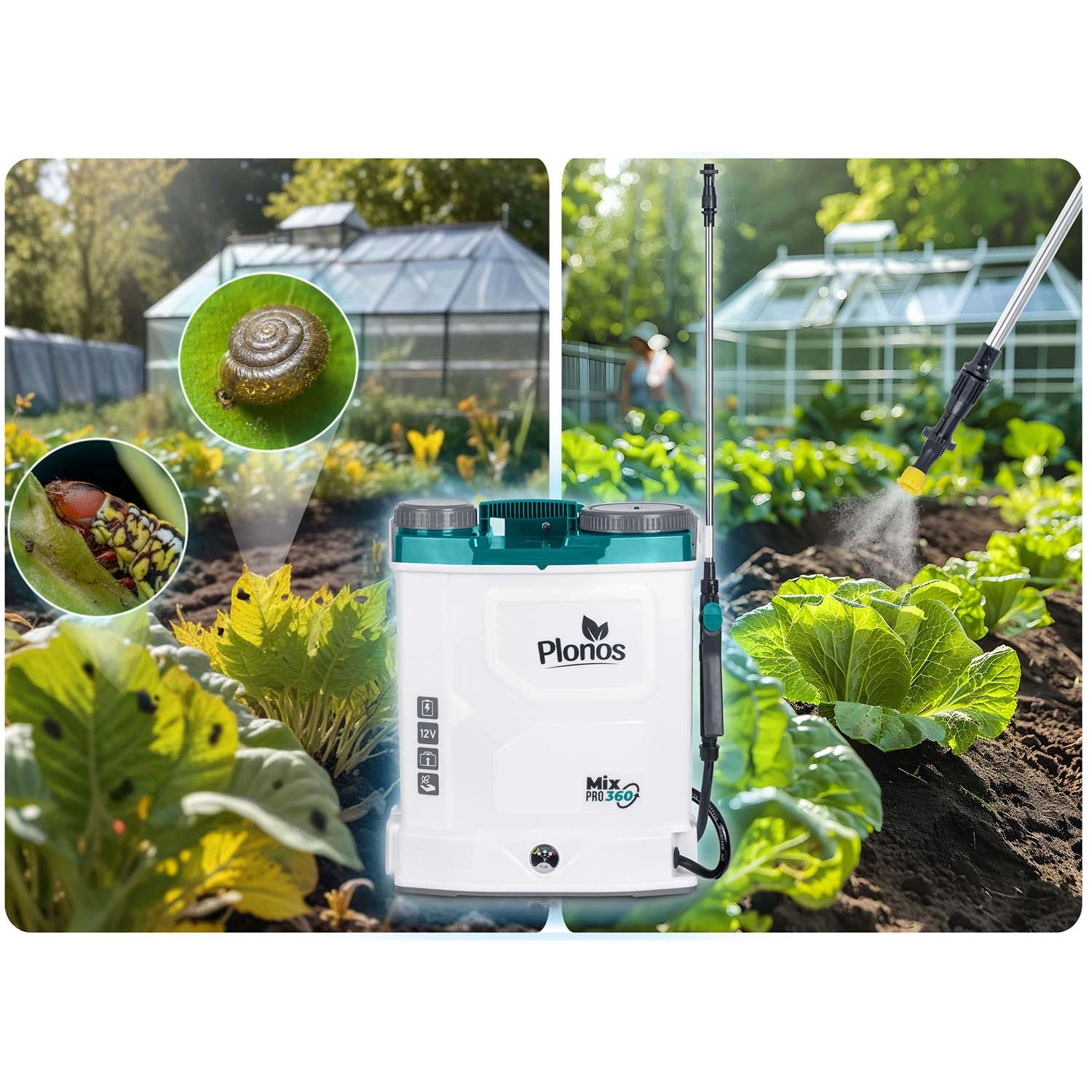 Le pulvérisateur PLONOS Mix Pro 360 est un allié fiable pour la protection et la nutrition des plantes sur massifs, pelouses et vergers. Le système de mélange intégré maintient la solution de travail homogène, ce qui augmente l’efficacité de la pulvérisation et élimine l’obstruction des buses. La batterie 12 V/8 Ah offre un fonctionnement silencieux et une autonomie jusqu’à 9 heures par charge, afin de traiter aisément de plus grandes surfaces.