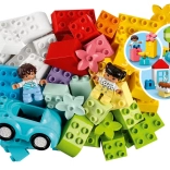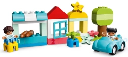 LEGO DUPLO Boîte avec briques est un set de démarrage idéal pour les plus petits constructeurs. Il offre 65 pièces colorées comprenant une petite voiture avec roues mobiles, des fenêtres, un toit, des fleurs, une baguette, des figurines DUPLO et des briques avec les chiffres 1–3. La boîte de rangement robuste facilite le rangement et le transport, et les grandes pièces sûres développent la créativité, la motricité fine et la perception spatiale.