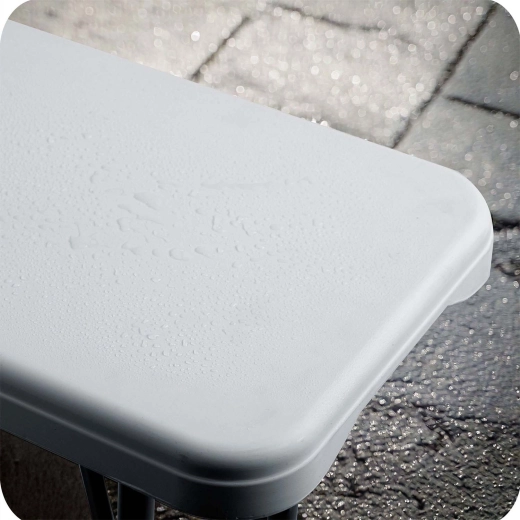 En quelques instants, vous pouvez plier le banc en deux en forme de valise avec poignée, ce qui facilite le transport et le rangement. Les embouts antidérapants sur les pieds protègent les surfaces et augmentent la sécurité, à l’intérieur comme à l’extérieur.