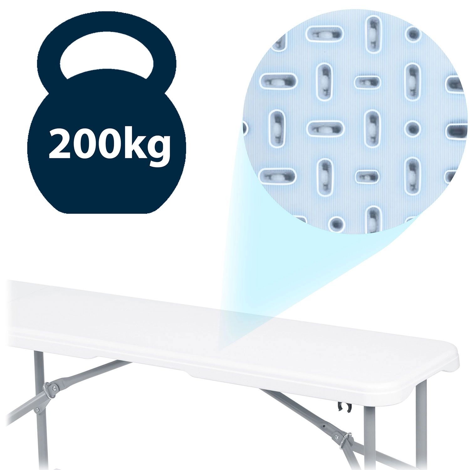 - Haute capacité de charge jusqu’à 200 kg – grâce à la conception nervurée et à la qualité de fabrication
