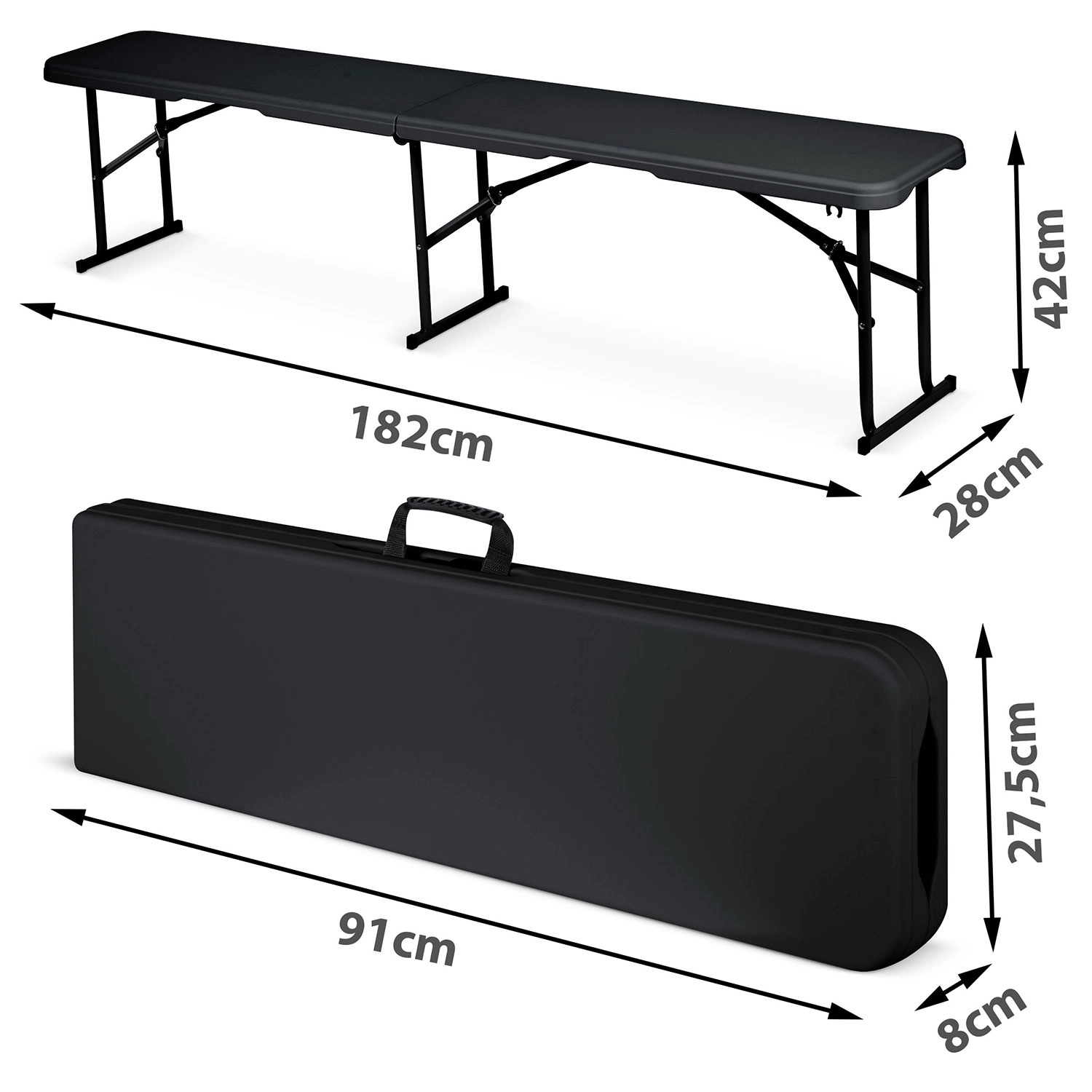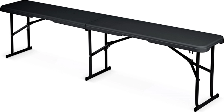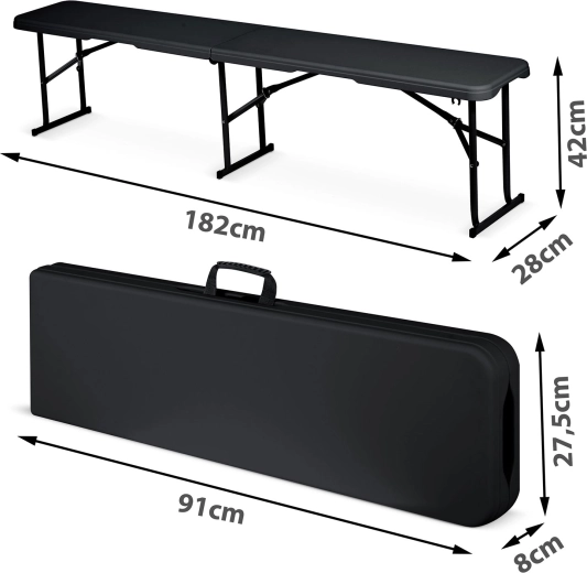 Pratique banc pliant pour jardin, événements et balcon – structure stable et ergonomique, cadre en acier peint par poudrage contre la corrosion, surface en PE imperméable et facile à nettoyer, poignée de transport confortable et dimensions compactes une fois plié. Idéal pour les fêtes, pique-niques et assises mobiles.