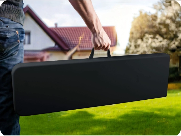Le banc pliant durable PLONOS offre une assise fiable pour une utilisation extérieure comme intérieure. Son cadre robuste en acier peint, sa surface en PE résistante à l’eau et aux UV et son ergonomie étudiée garantissent une longue durée de vie et un confort d’usage. Grâce à la poignée et à la charnière centrale, vous pliez et transportez le banc en un instant.