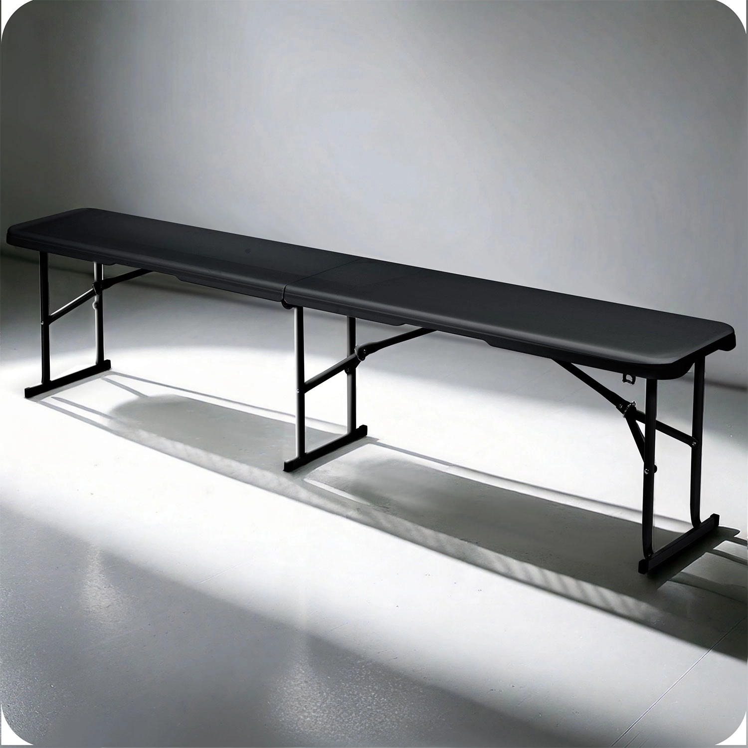 Le banc se plie au milieu et dispose d’une poignée intégrée. Pliage rapide, encombrement minimal au stockage et transport aisé pour chaque événement.