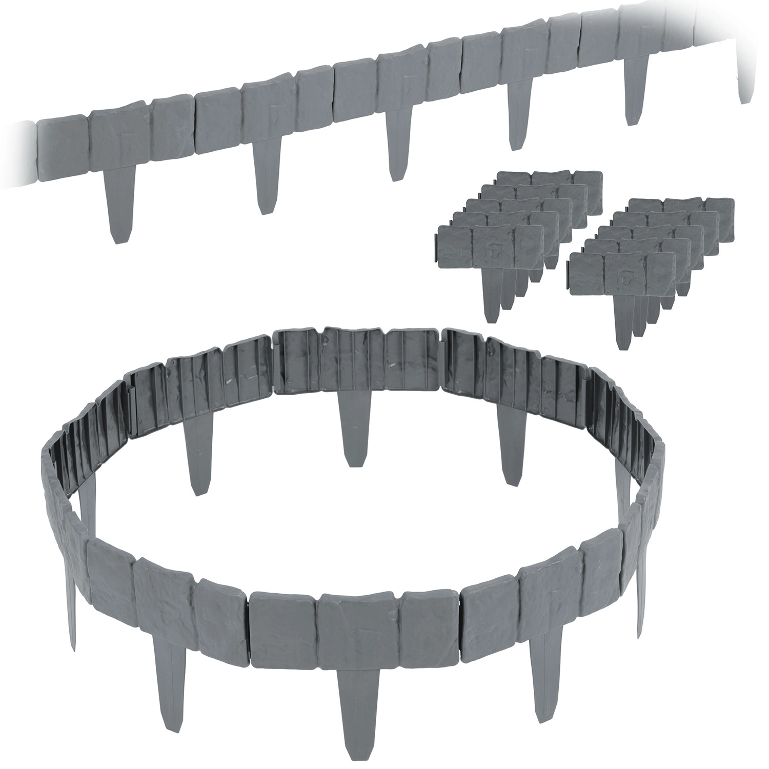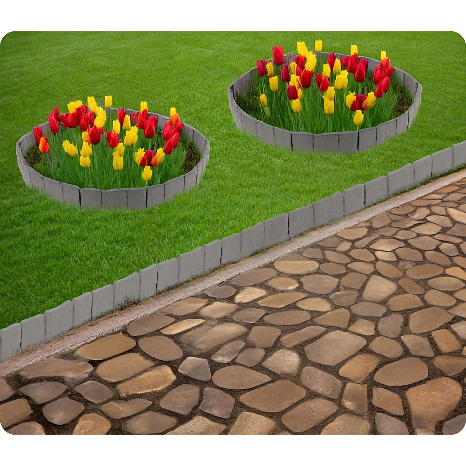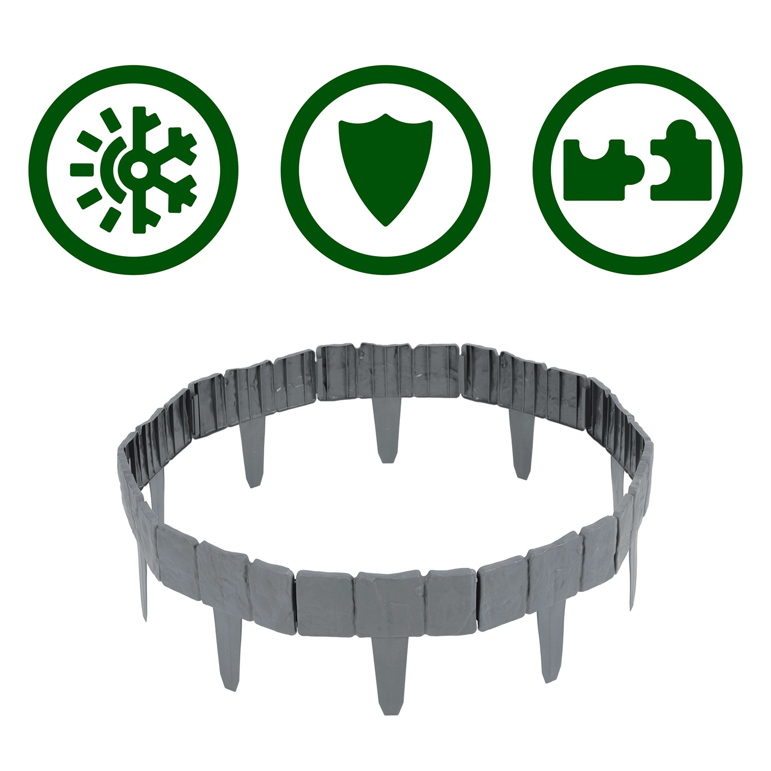 Gardez massifs et pelouse parfaitement séparés avec la bordure de jardin Plonos de 2,5 m. Son système modulaire avec piquets intégrés permet une installation rapide sans outils, le plastique PP résistant est imputrescible et résiste aux UV, au gel et aux intempéries, et l’aspect pierre en gris élégant s’harmonise avec tout jardin. La bordure empêche l’éparpillement de l’écorce ou des graviers sur la pelouse et protège les plantes contre les dommages.