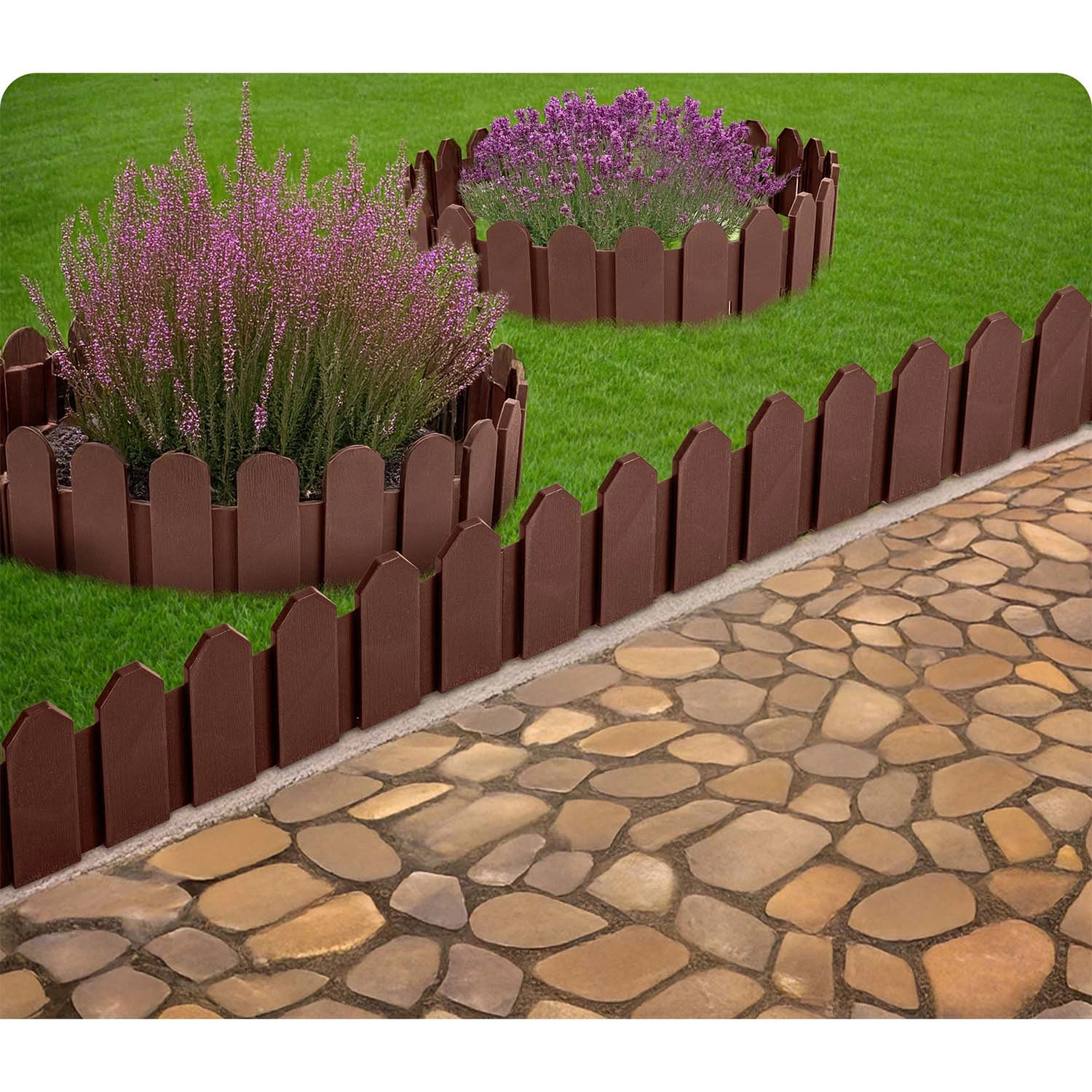 Reliez les éléments en lignes droites ou en cercles et créez en un rien de temps la forme dont vous avez besoin. Idéal pour border les massifs, les cuvettes d’arbres et les allées.