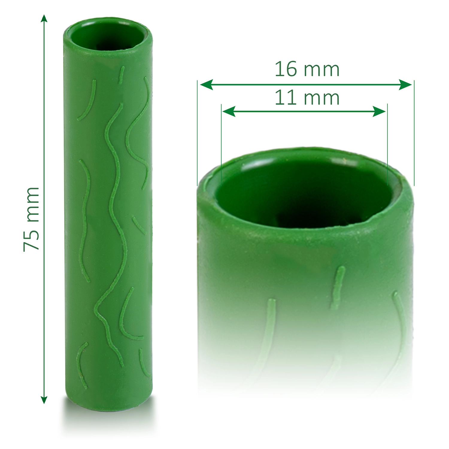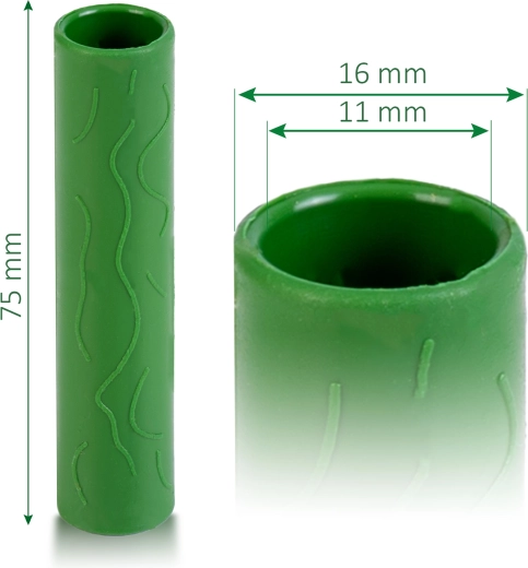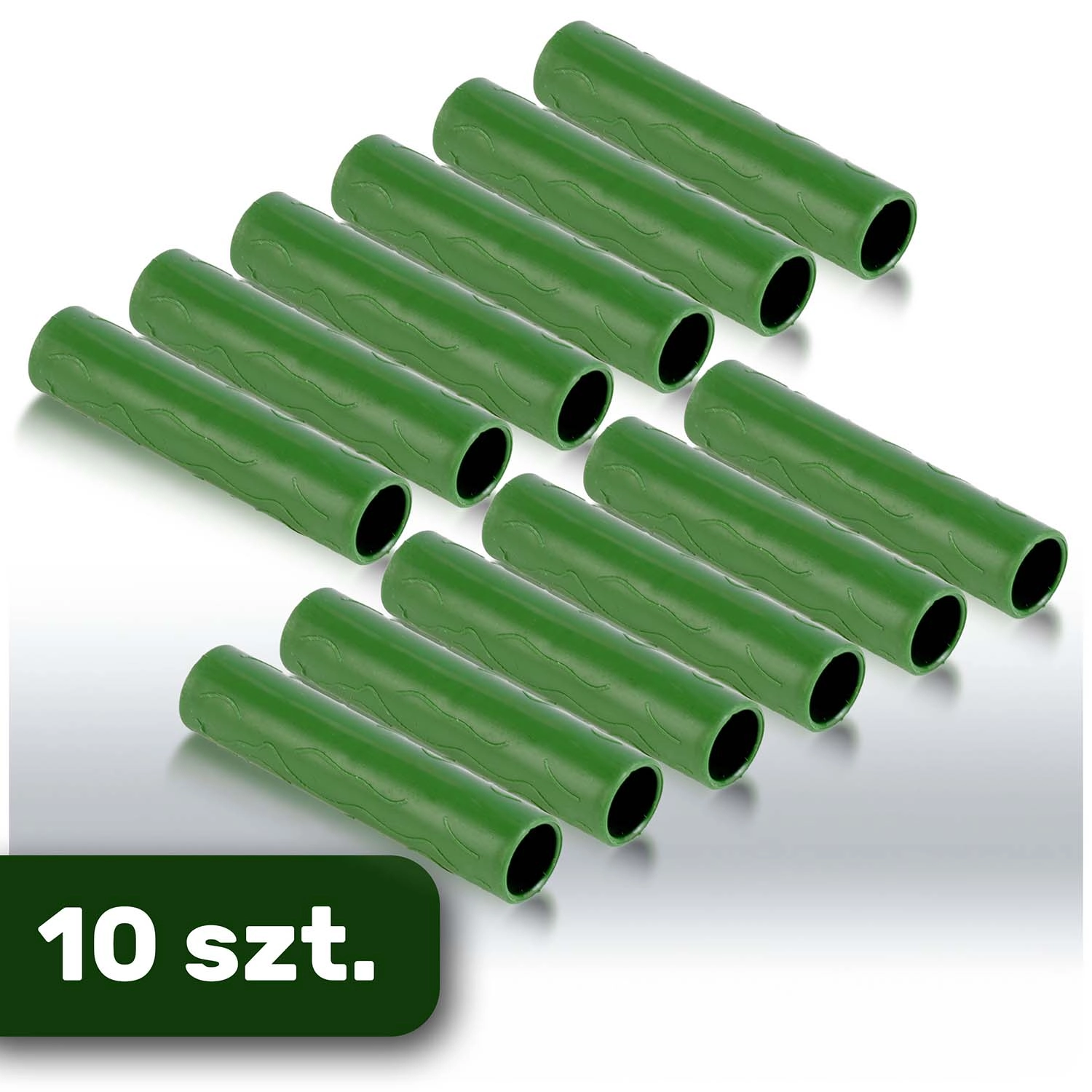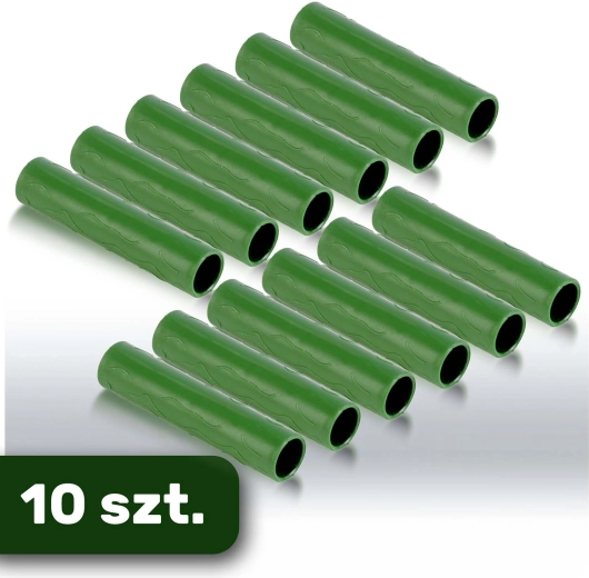 Manchons pratiques pour tiges de 11 mm de diamètre, en lot de 10. Permettent un rallongement rapide des supports, la création de structures spatiales et un rangement facile. Utilisation universelle pour tiges en bambou, acier et plastique. Matériau PE résistant et finition verte discrète pour une intégration naturelle au jardin.