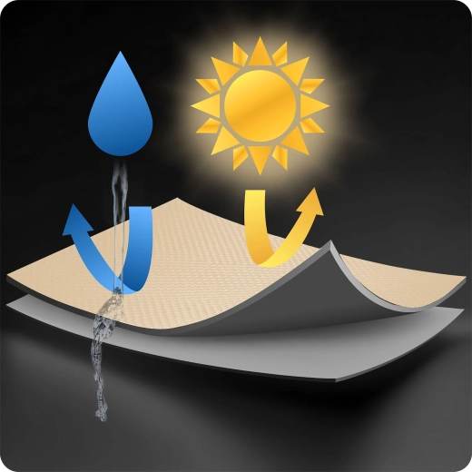 - PE déperlant 180 g/m² – protection contre les UV et les petites pluies.