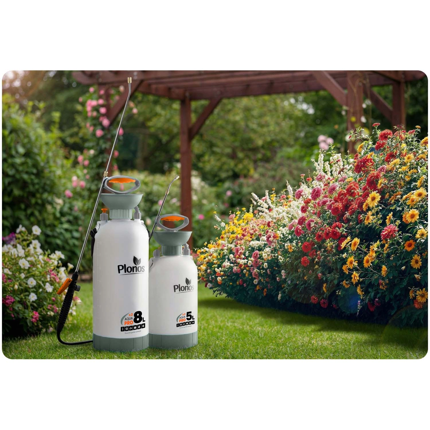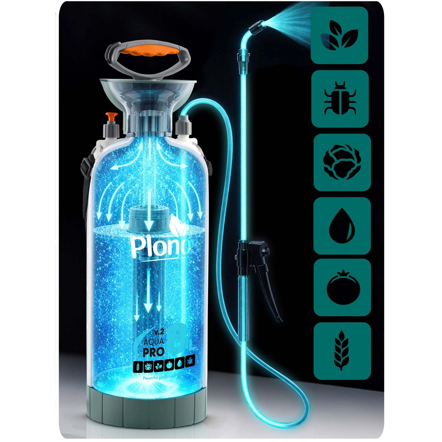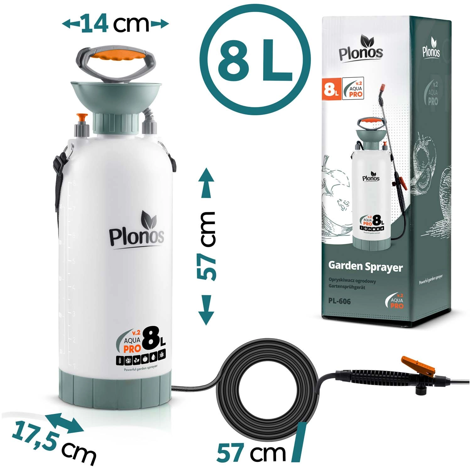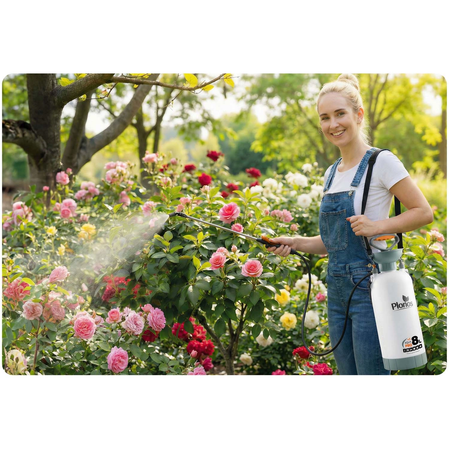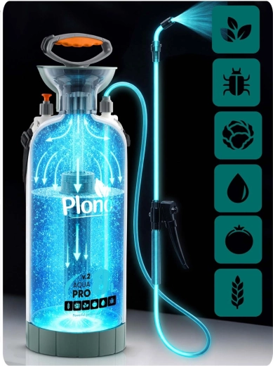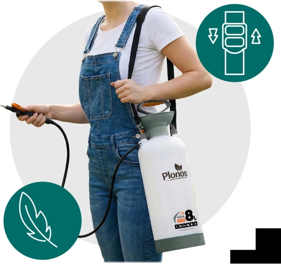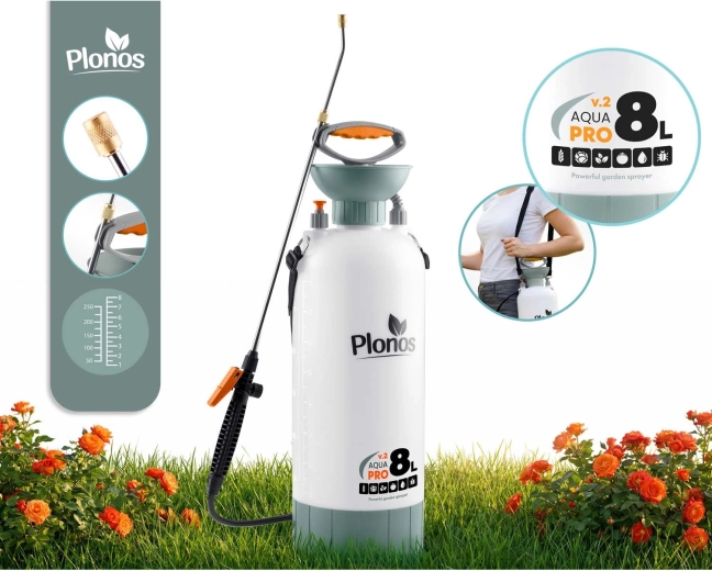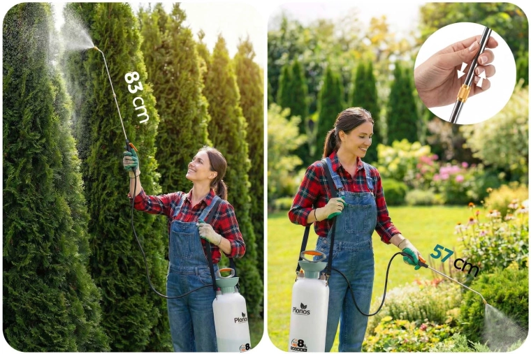 Pulvérisateur manuel à pression pratique Plonos 8 l pour entretenir le jardin comme un professionnel. Il offre un large entonnoir intégré pour un remplissage facile, une buse en laiton réglable allant de la fine brume au jet puissant et une lance télescopique en acier inoxydable jusqu’à 83 cm pour une plus grande portée sans se pencher. Le réservoir résistant en plastique PE convient aux engrais comme aux produits de protection des plantes, la pression de 2,76 bar assure une pulvérisation uniforme. Le sangle renforcée et réglable et le faible poids garantissent un port confortable.