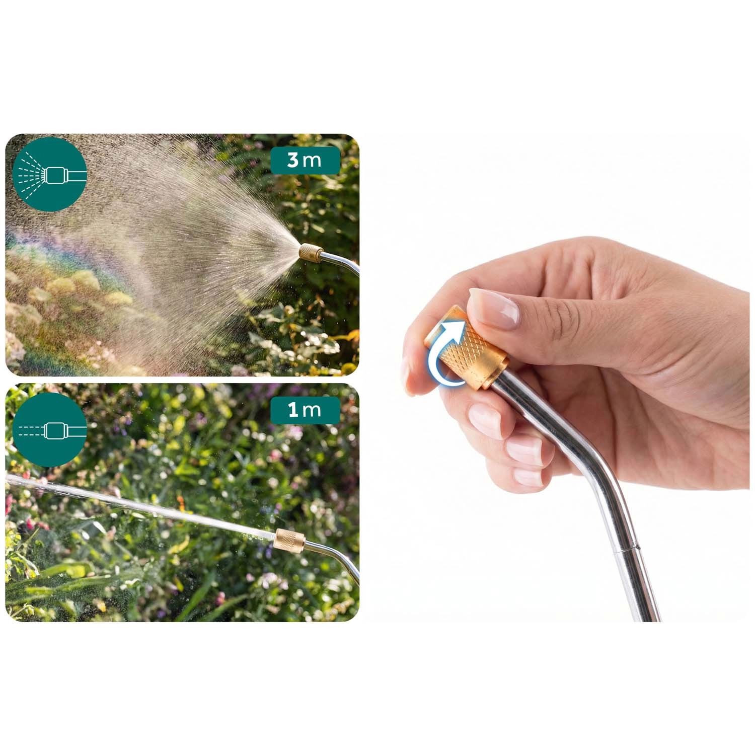 La longue lance et la gâchette à réglage fin permettent une pulvérisation uniforme des rosiers, arbustes et massifs sans se pencher ni se fatiguer.