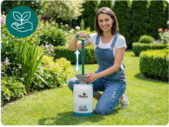 Soignez fleurs, arbustes et légumes avec le pulvérisateur à pression PLONOS de 5 litres. Grâce à sa construction robuste en PE, sa lance inox et sa buse en laiton, vous bénéficiez d’une longue durée de vie, d’un dosage précis et de moins d’interruptions. Le large entonnoir intégré accélère le remplissage sans salissures, tandis que la sangle réglable répartit le poids pour un travail confortable, même sur de grandes surfaces.