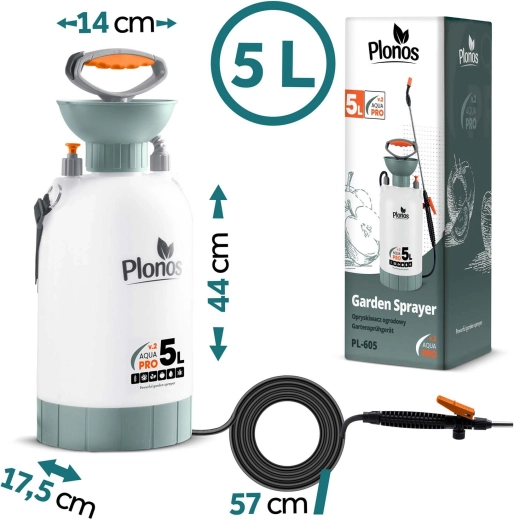 Faites de votre jardin une oasis verte avec le pulvérisateur manuel PLONOS AQUA PRO 5 L. Le réservoir en PE résiste aux engrais et aux produits chimiques, la lance en acier inoxydable et la buse en laiton assurent une longue durée de vie et une pulvérisation précise. Grâce à l’entonnoir intégré, vous remplissez le liquide rapidement et proprement, tandis que la sangle d’épaule réglable facilite le travail même lors d’une utilisation prolongée.