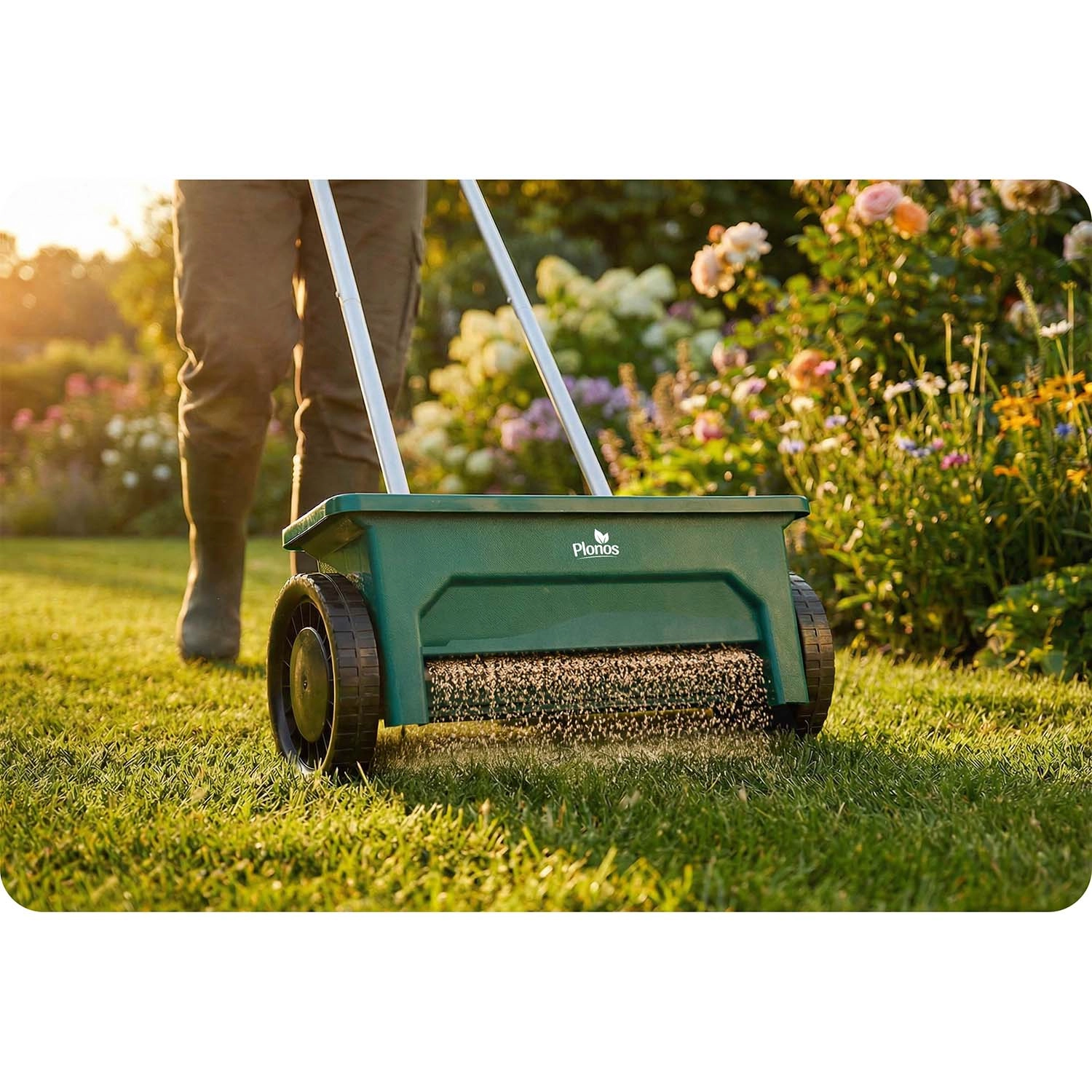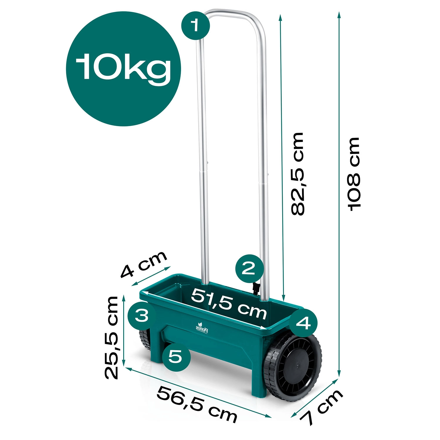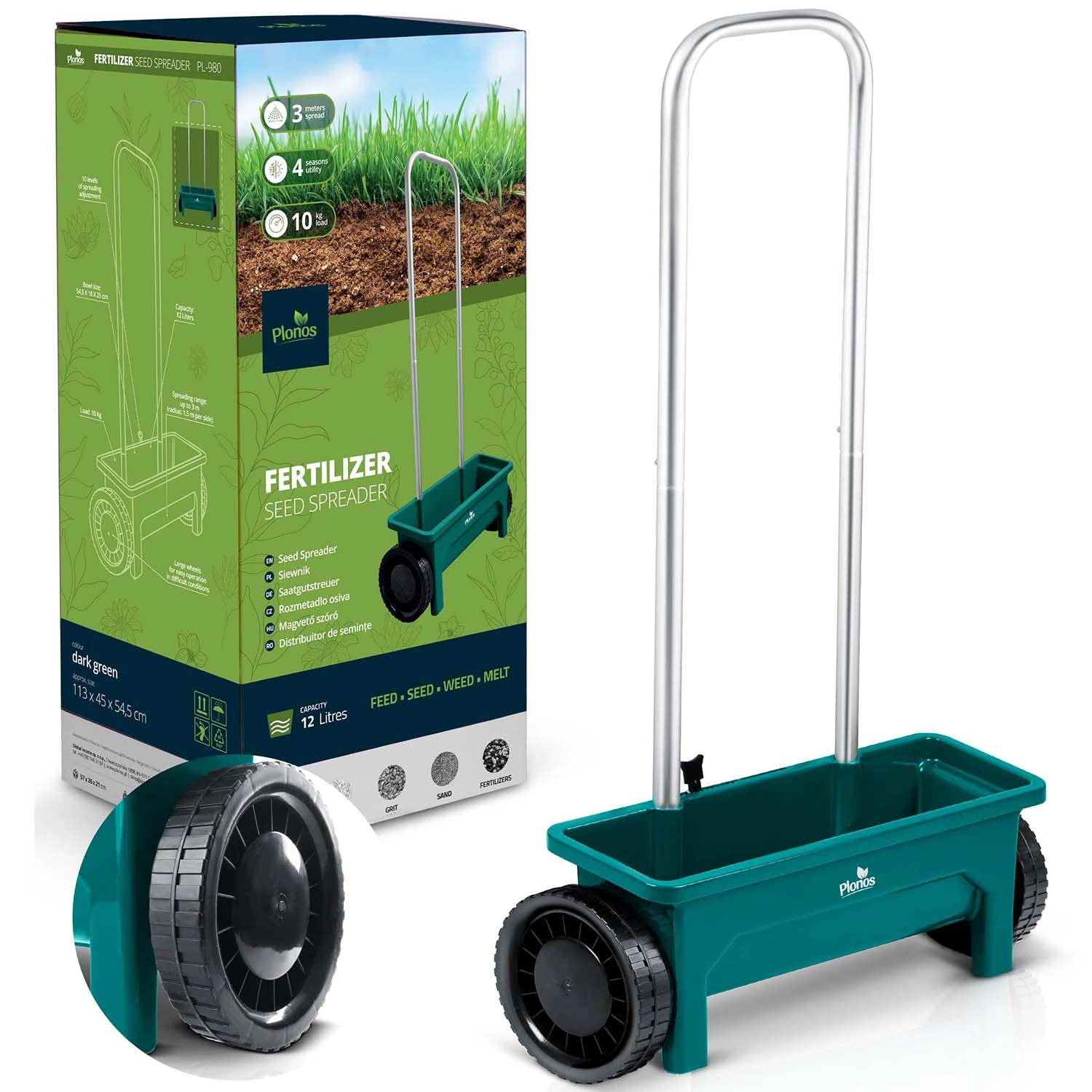 L’épandeur PLONOS 12 l est un auxiliaire fiable pour l’entretien de la pelouse et des trottoirs. Du printemps à l’hiver, il dose facilement graines de gazon, engrais, granulés, sable et sel de déneigement. Le débit réglable en 10 paliers permet d’adapter précisément la quantité et la taille du matériau épandu pour un recouvrement homogène des surfaces.