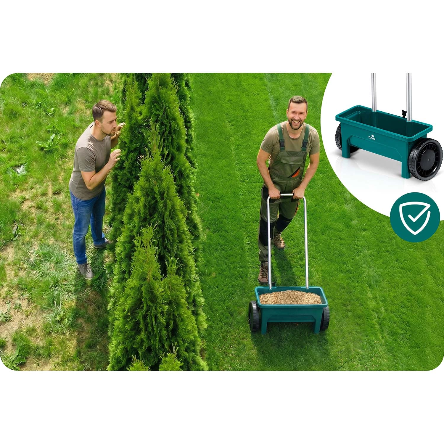 Ajustez finement le débit pour différents matériaux – des petites graines de gazon jusqu’au sel ou granulés plus grossiers. Répartition uniforme sans gaspillage inutile.