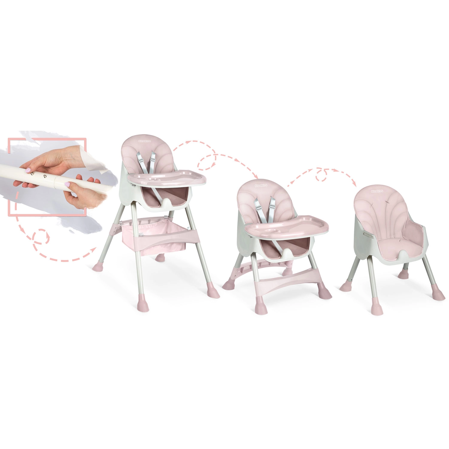 - 3 positions de tablette + dépose complète – espace flexible pour accompagner la croissance de l’enfant.