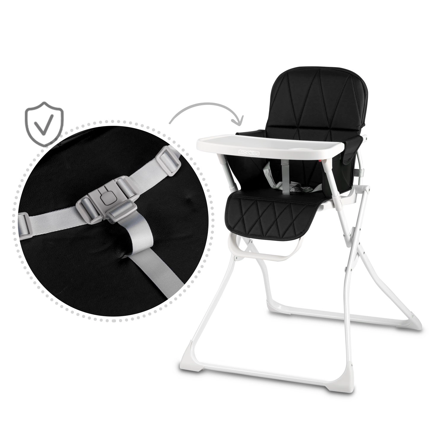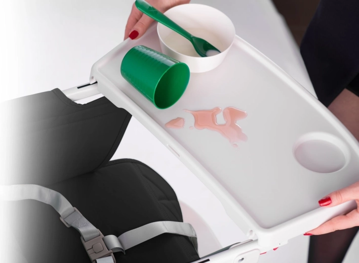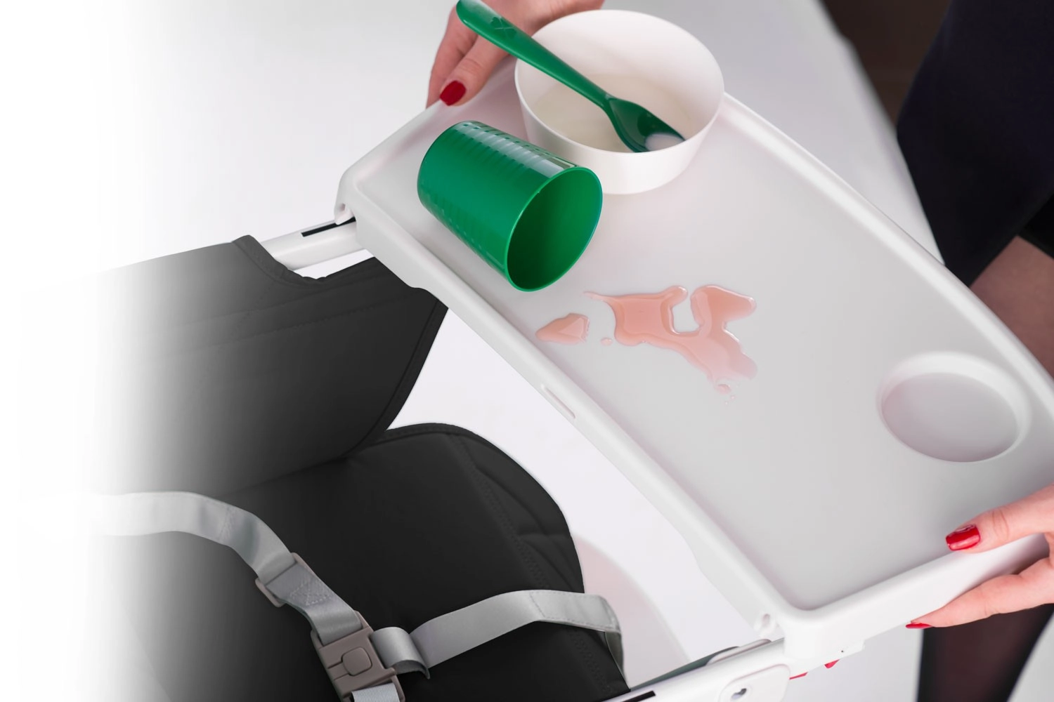 Le rembourrage doux, le repose-pieds ergonomique et le harnais de sécurité à 3 points maintiennent votre enfant à l’aise et en sécurité à chaque repas.