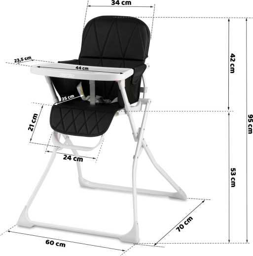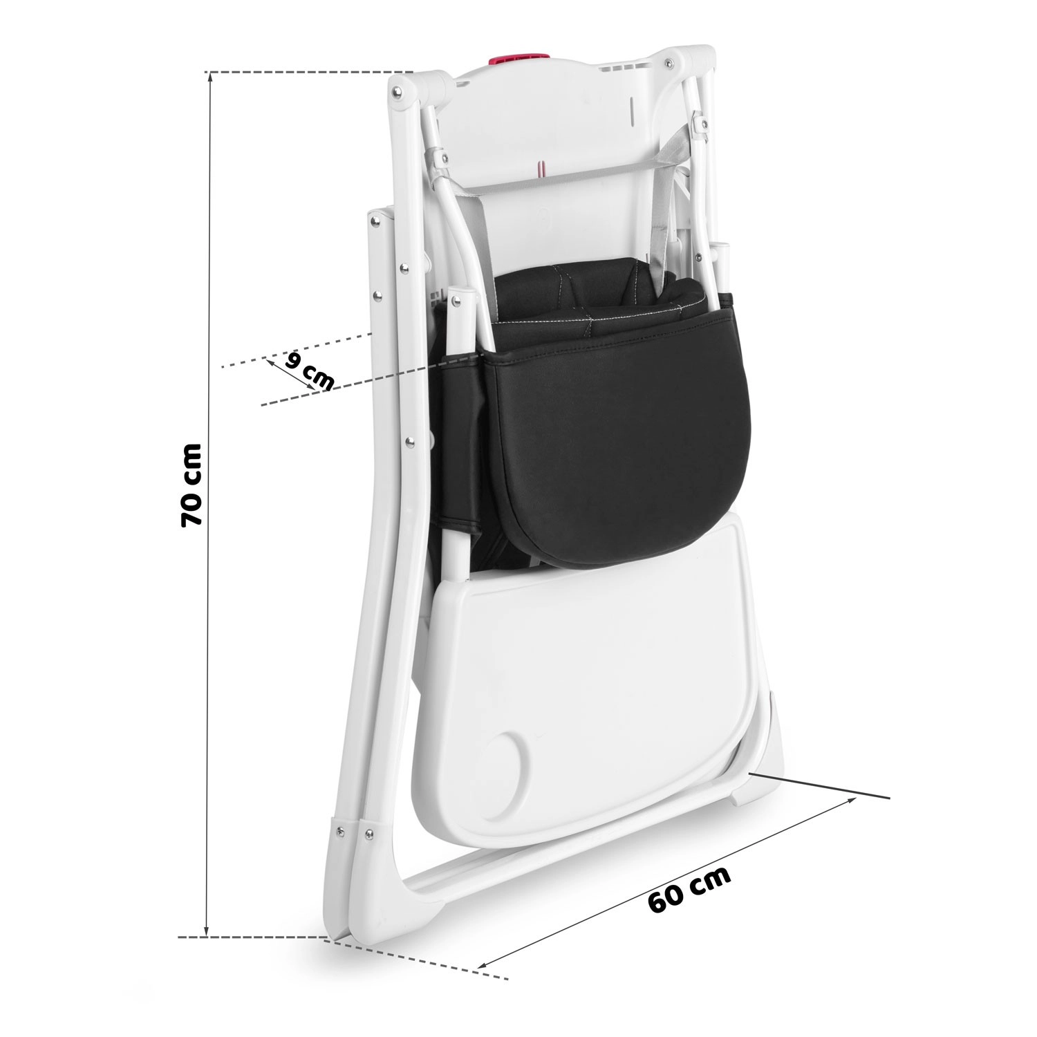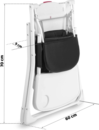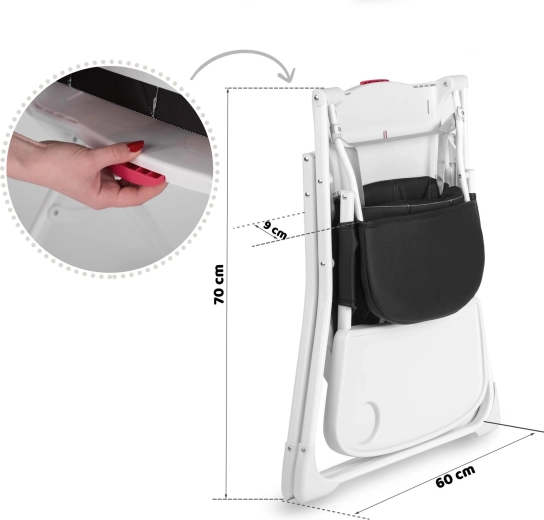Grâce au pliage rapide d’une seule pression, vous rangez la chaise en un instant dans un placard ou un coin. Le harnais 3 points à longueur réglable maintient l’enfant dans une position stable et sûre, tandis que le repose-pieds favorise une assise correcte et confortable pendant les repas comme les jeux.
