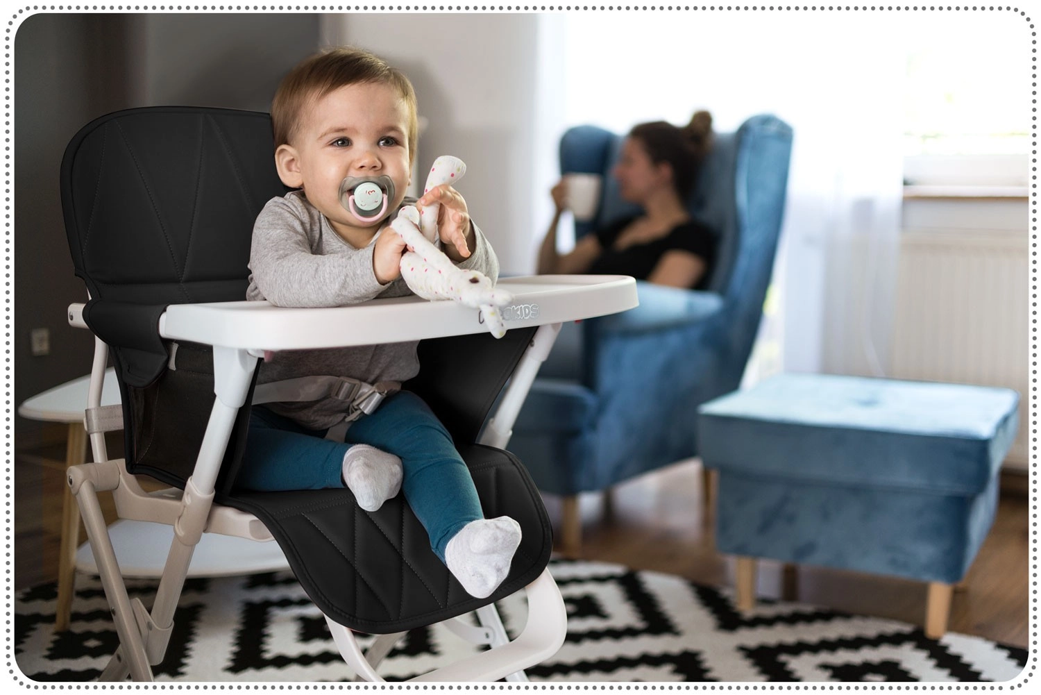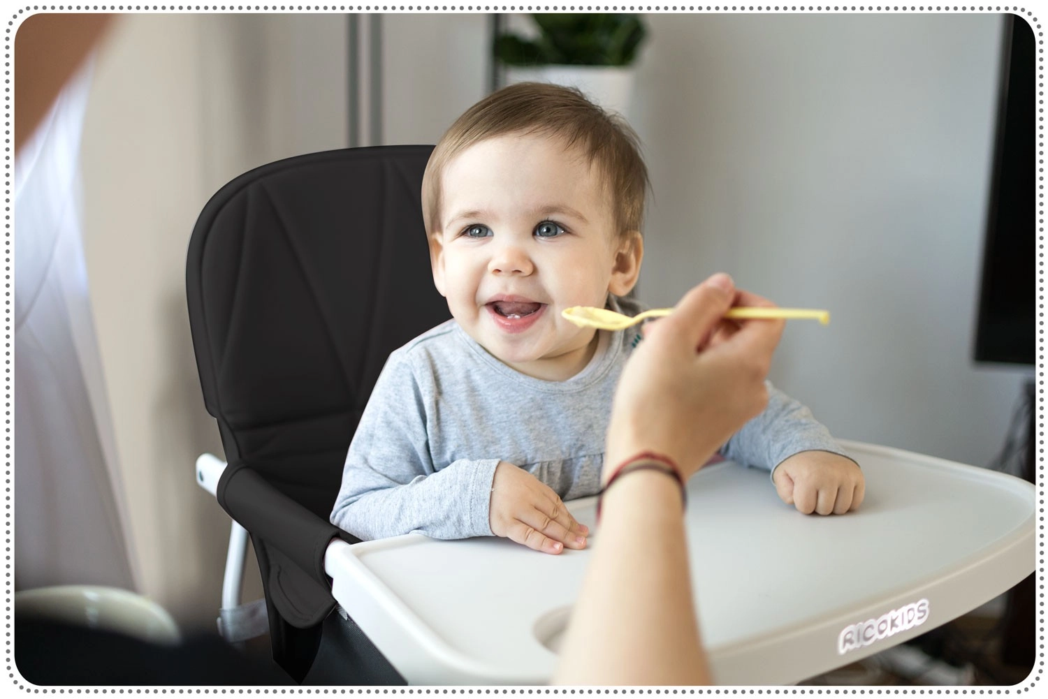 La chaise haute RICOKIDS Nuco allie design minimaliste moderne et fonctionnalité pour l’alimentation au quotidien. Le plateau avec bords relevés et emplacement dédié pour gobelet limite les éclaboussures, tandis que la housse rembourrée et piquée assure un confort maximal. Les matériaux sont faciles à entretenir – le plateau se retire et se rince sous l’eau courante, la housse se nettoie d’un simple coup d’éponge.