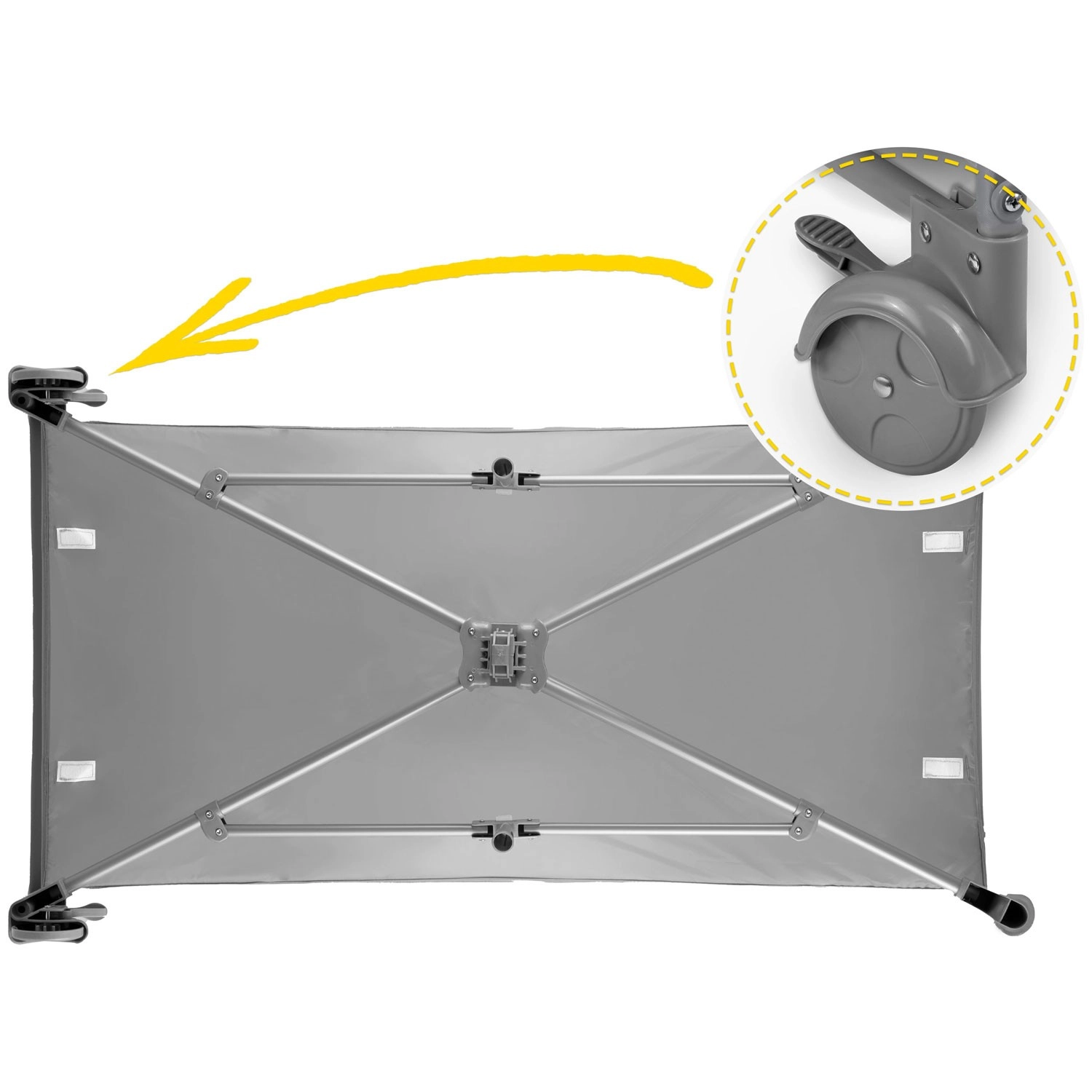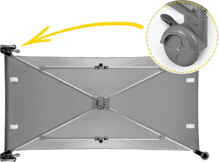 Inclus dans le lot : matelas pliant, table à langer, arceau avec jouets, organiseur pratique et poche ainsi que sac de transport. Les roulettes avec frein permettent de déplacer facilement le lit dans l’appartement et de le bloquer en toute fiabilité. Sa structure robuste sans arêtes vives et le système anti-pliage accidentel renforcent la sécurité. Le lit se plie et se déplie rapidement – idéal pour voyager, rendre visite à la famille ou pour un usage quotidien.